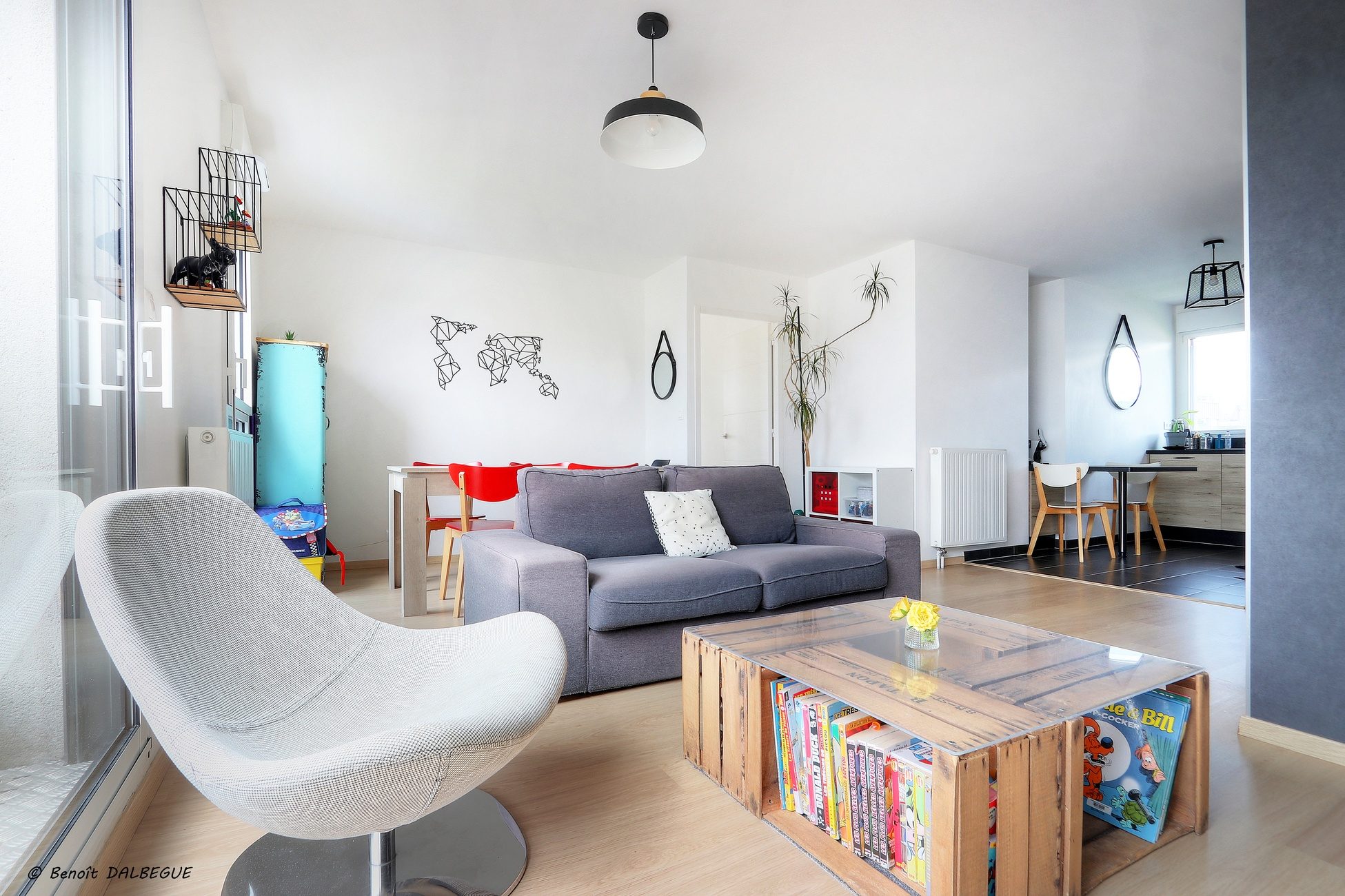 Une grande pièce de vie de plus de 32m2 donnant sur un la...