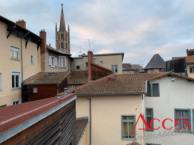 Dans un petit immeuble de l'hypercentre ville de Limoges où notre agence est syndic. Commerces dans la rue. Au dernier étage sans ascenseur. Appartement atypique avec grande cuisine aménagée équipée ouverte sur pièce de vie. Chambre en mezzanine et WC. Sa...