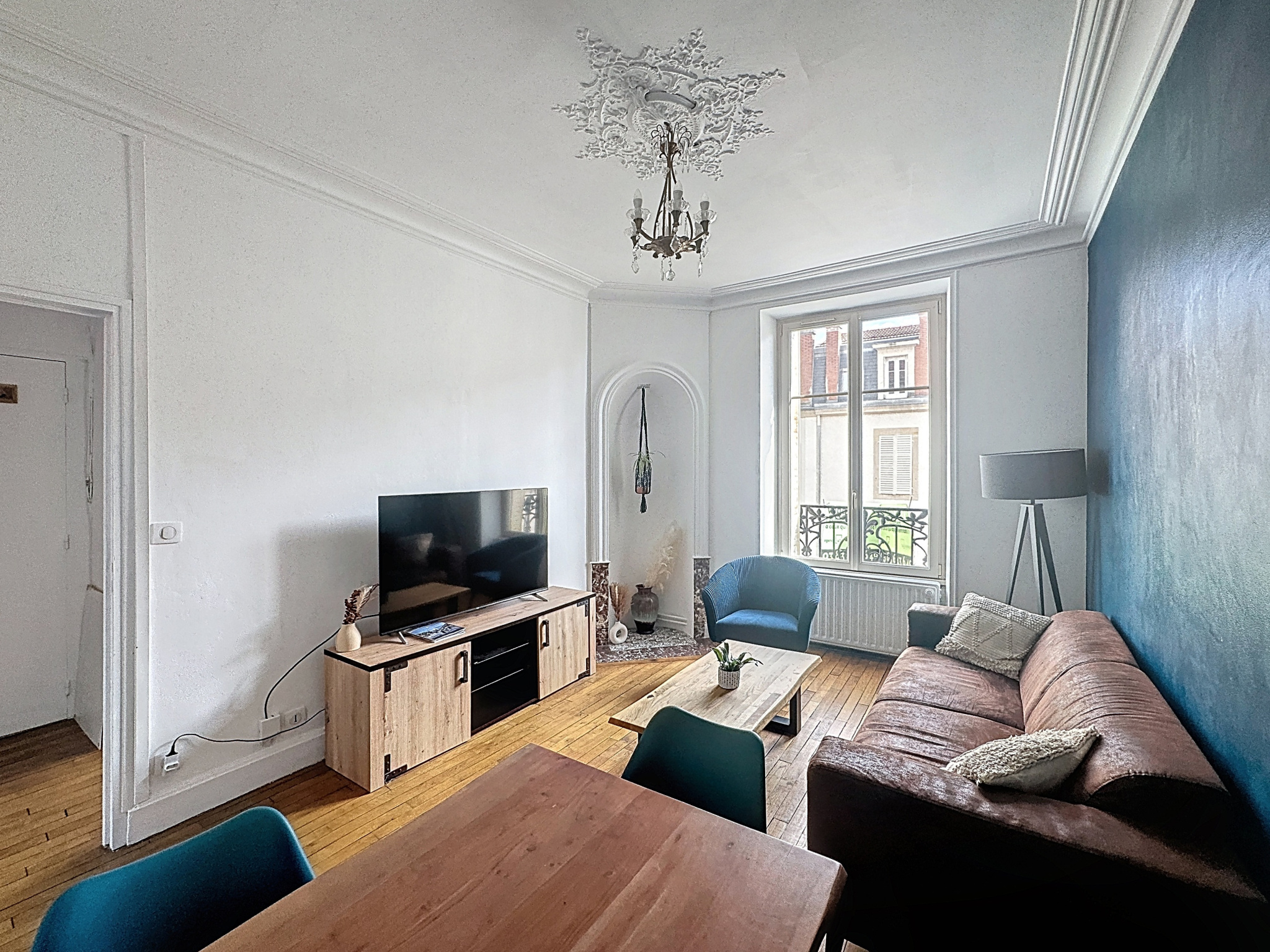 Parfaitement situé en centre ville, dans une rue calme à sens unique, au sein d'un immeuble de caractère parfaitement entretenu, je vous propose ce bel appartement F4 lumineux comprenant :