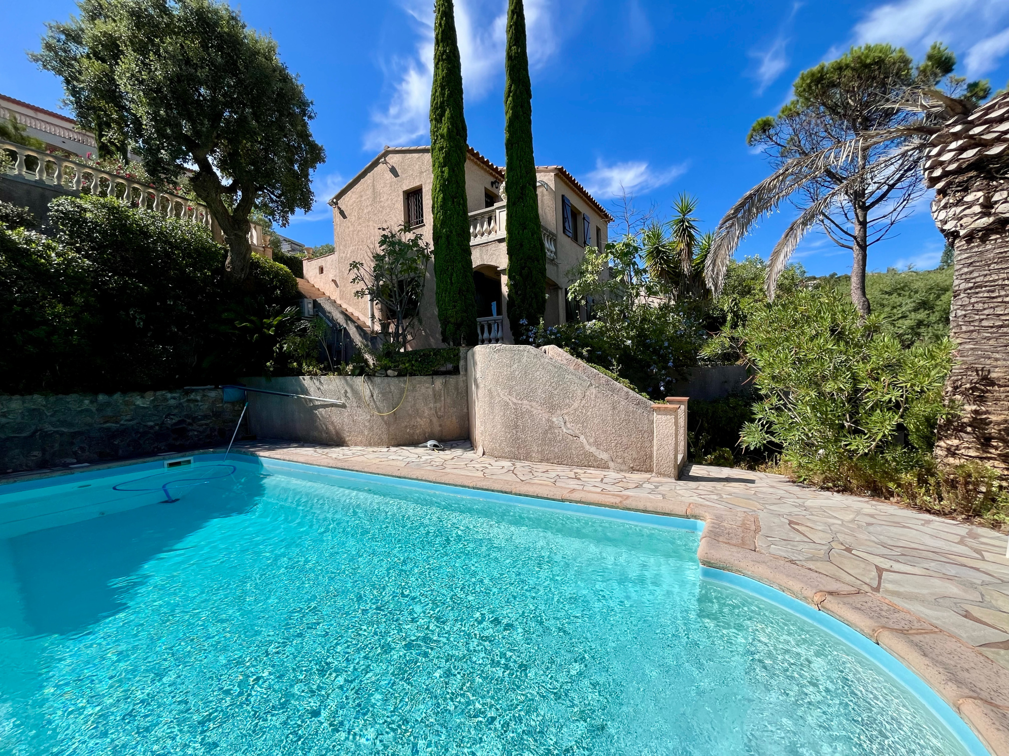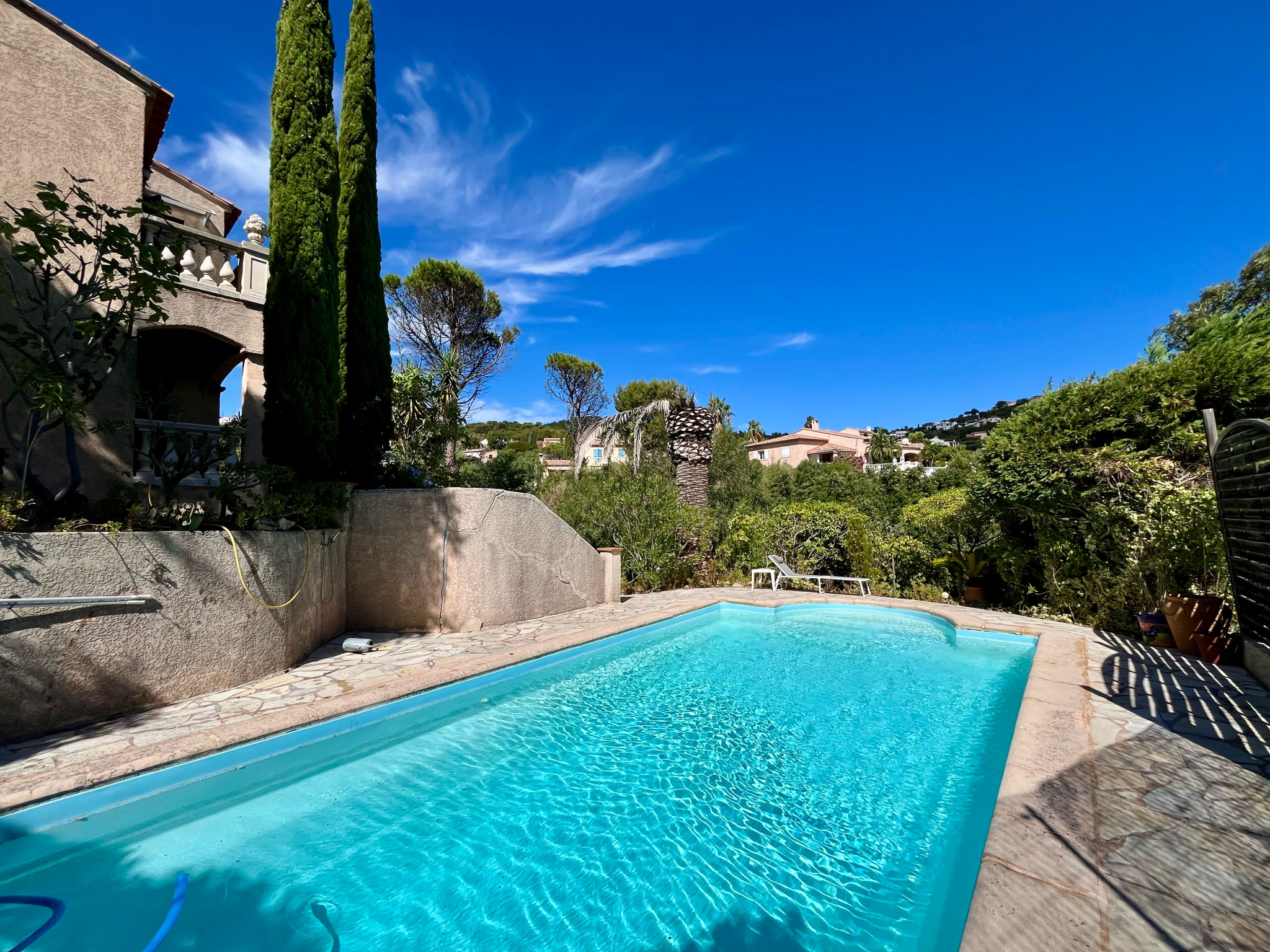 Au calme, proche de la mer (300m) et du centre-ville de SAINT-AYGULF (1km200). Villa provençale entièrement rénovée, d'une surface d'environ 215m2, avec vue mer. Se composant comme suit : Entrée avec wc invités, vaste séjour avec terrasse vue mer, cu...
