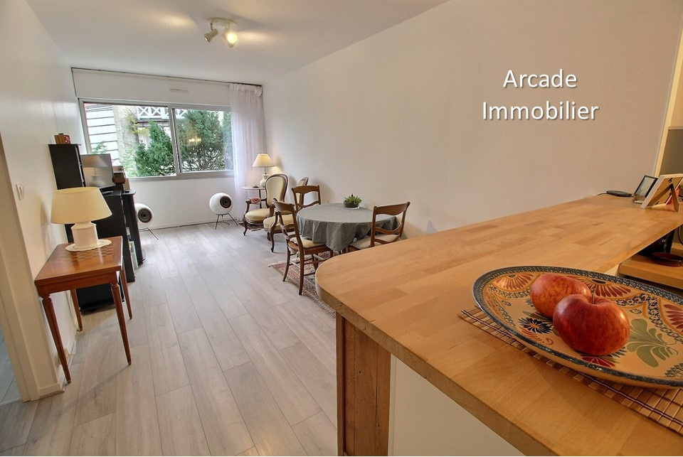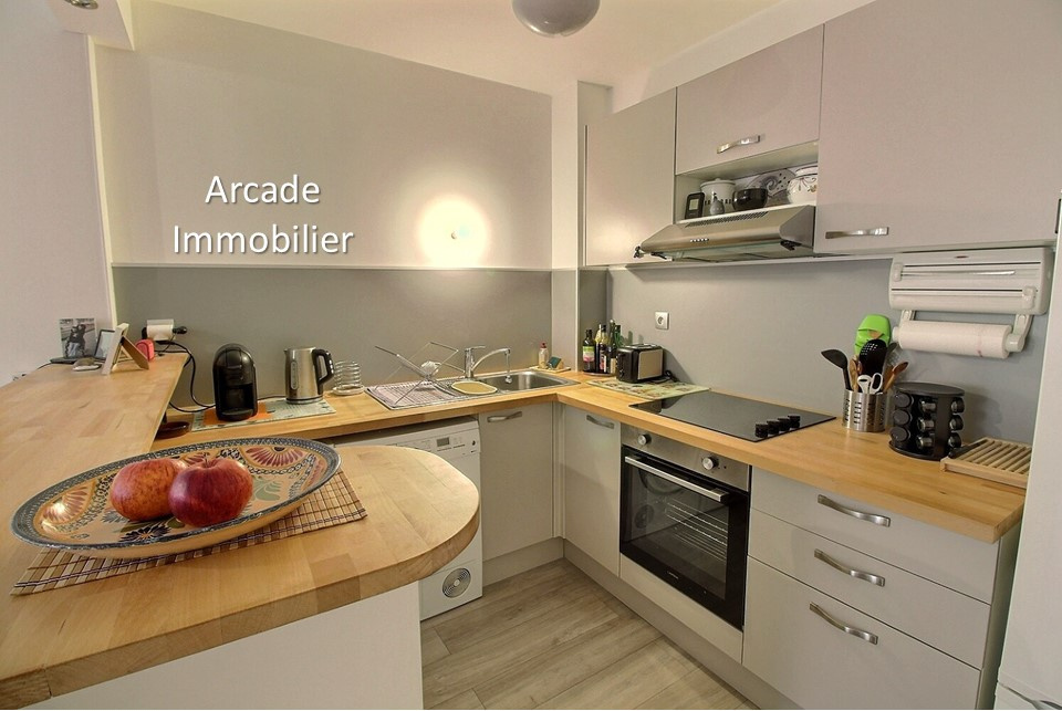 Dans résidence de standing. Appartement F2 avec terrasse et comprenant : entrée avec placard, séjour + cuisine USA 25 m2, 1 chambre, salle de bains avec water-closet. Cave. Charges/an : 1560 EUR. Lots : 30. « Les informations sur les risques aux...