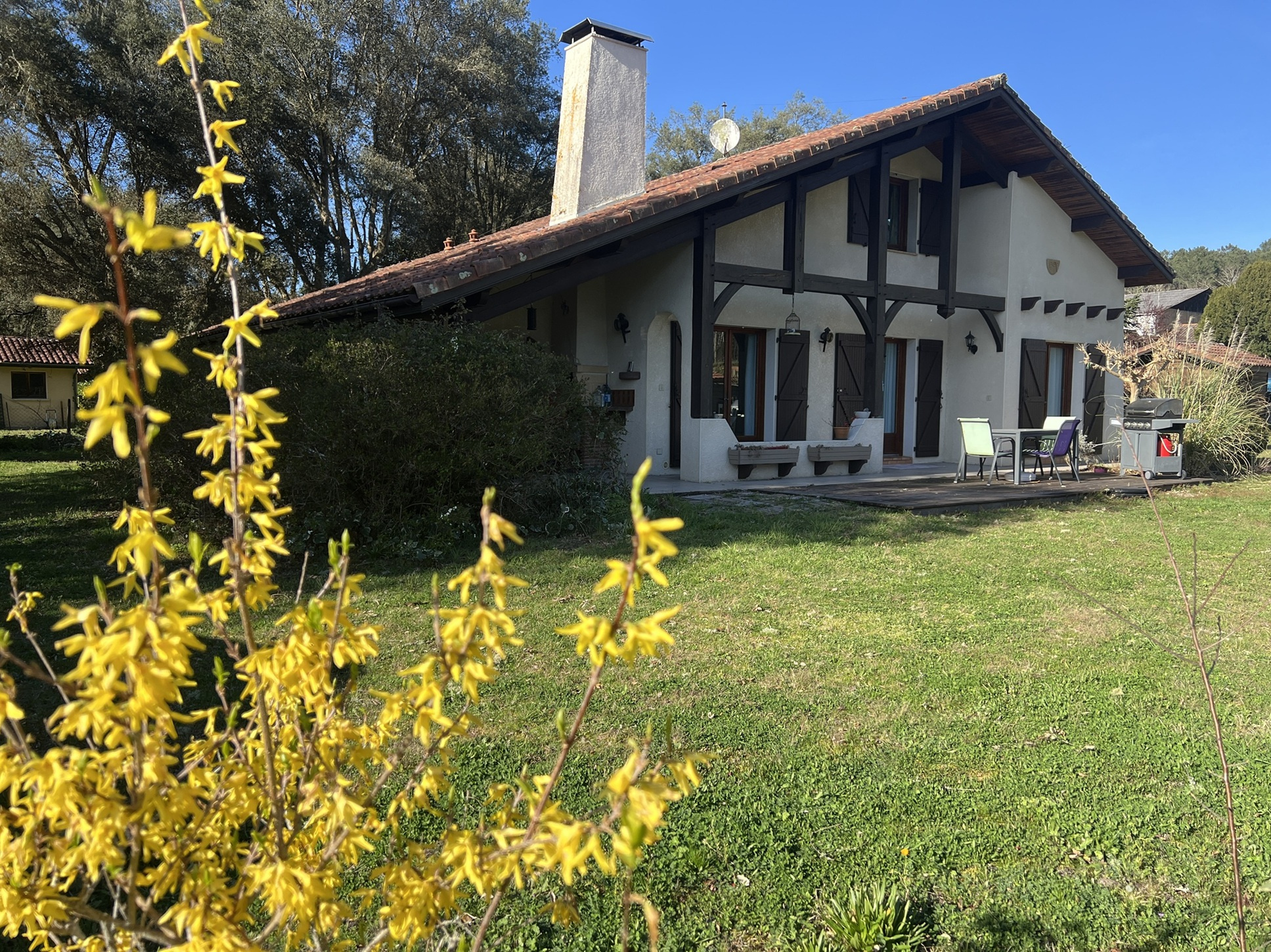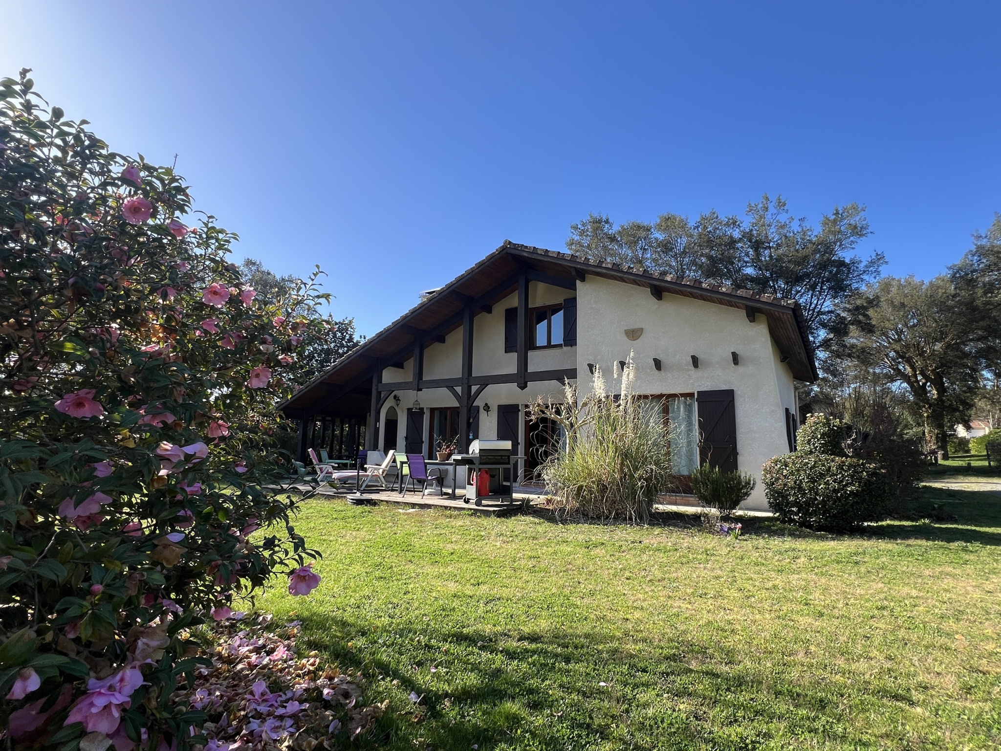 Découvrez cette agréable maison de style landais, de construction traditionnelle d'une surface habitable d'environ 73 m2 au sol + tout l'etage en sous pente entierement isolé et aménagé.