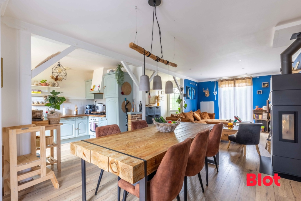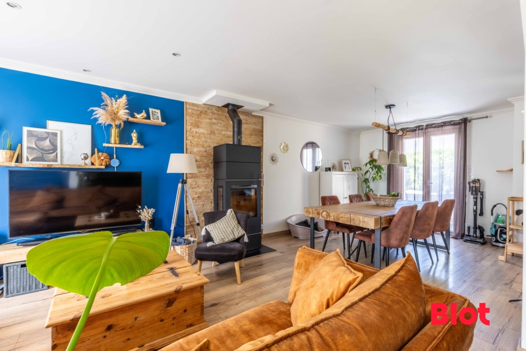 Découvrez cette maison de plain-pied entièrement rénovée avec goût, offrant une décoration moderne et chaleureuse.