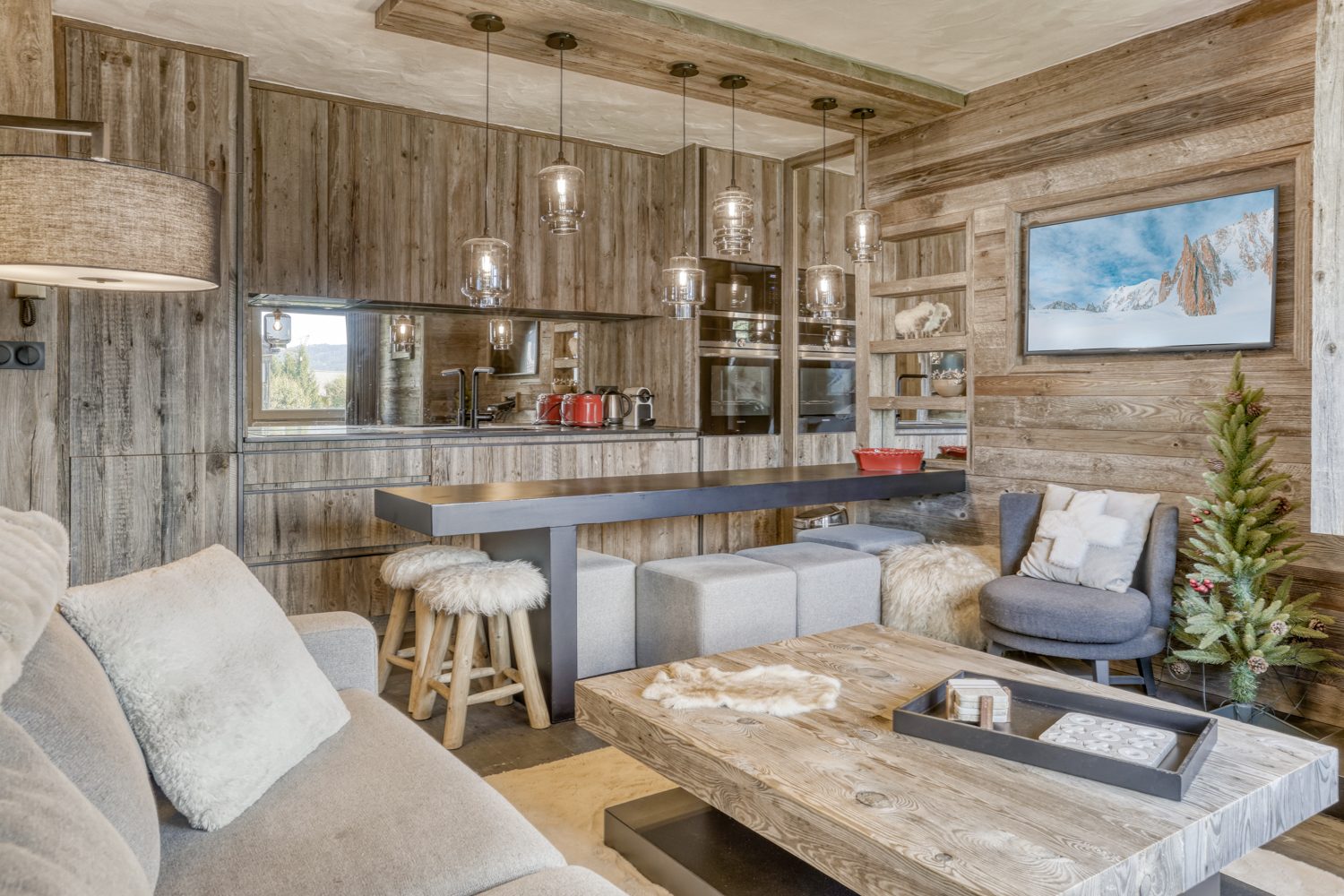 MEGEVE ROCHEBRUNE, COQUET TROIS PIECES REF. 7459, offrant une ambiance vieux bois et montagne, situé au 2ème étage de petite copropriété établie à 1 km des pistes de Rochebrune. Séjour avec cheminée, cuisine ouverte équipée et balcon S/E, chambre accès balcon,...