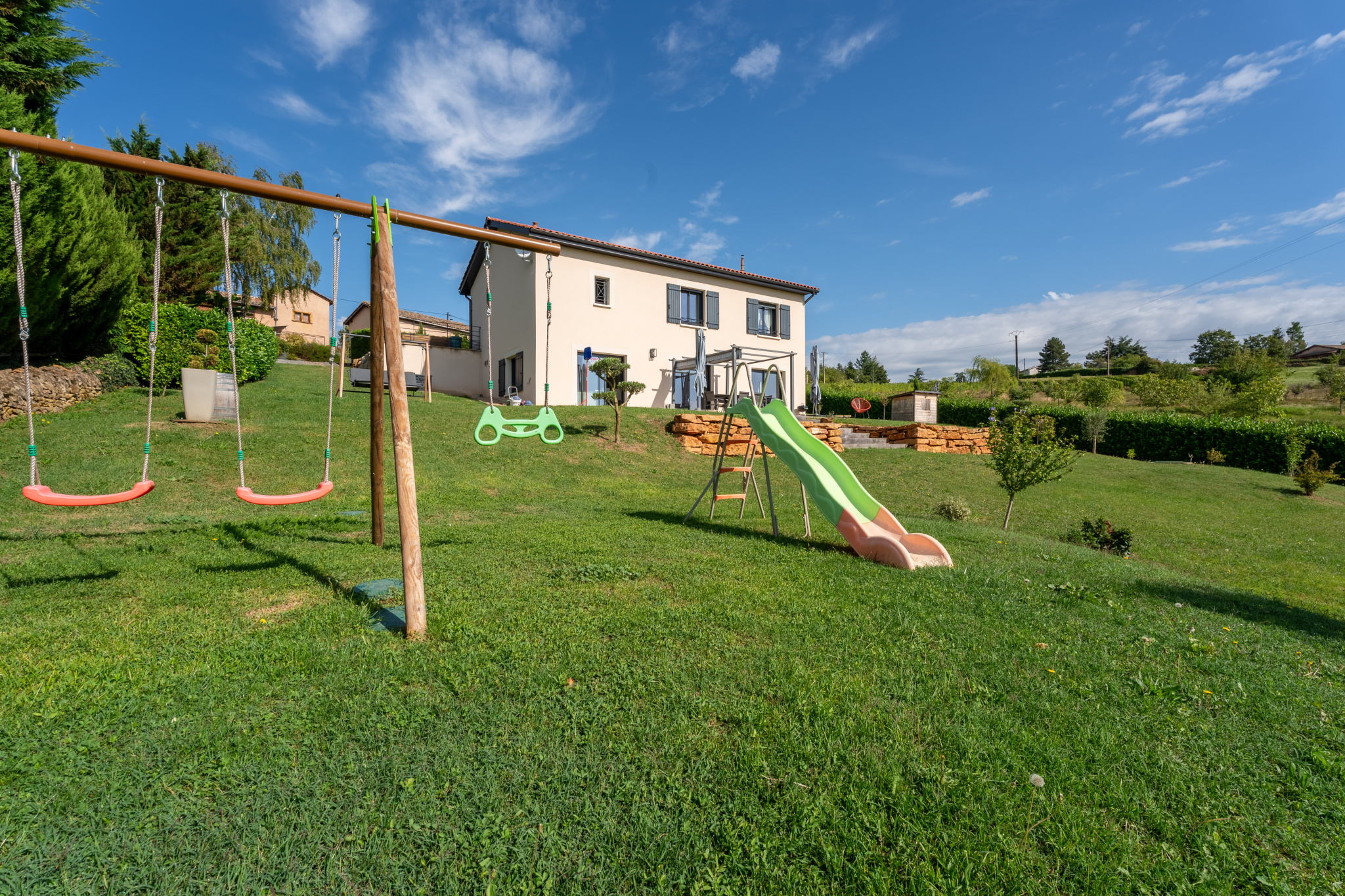 Découvrez un lieu d'exception à COGNY, à seulement 15 minutes de Villefranche ! Cette villa contemporaine, construite en 2015, est nichée au coeur d'un écrin de verdure. Elle offre une vue panoramique imprenable sur le Mont Blanc et l...