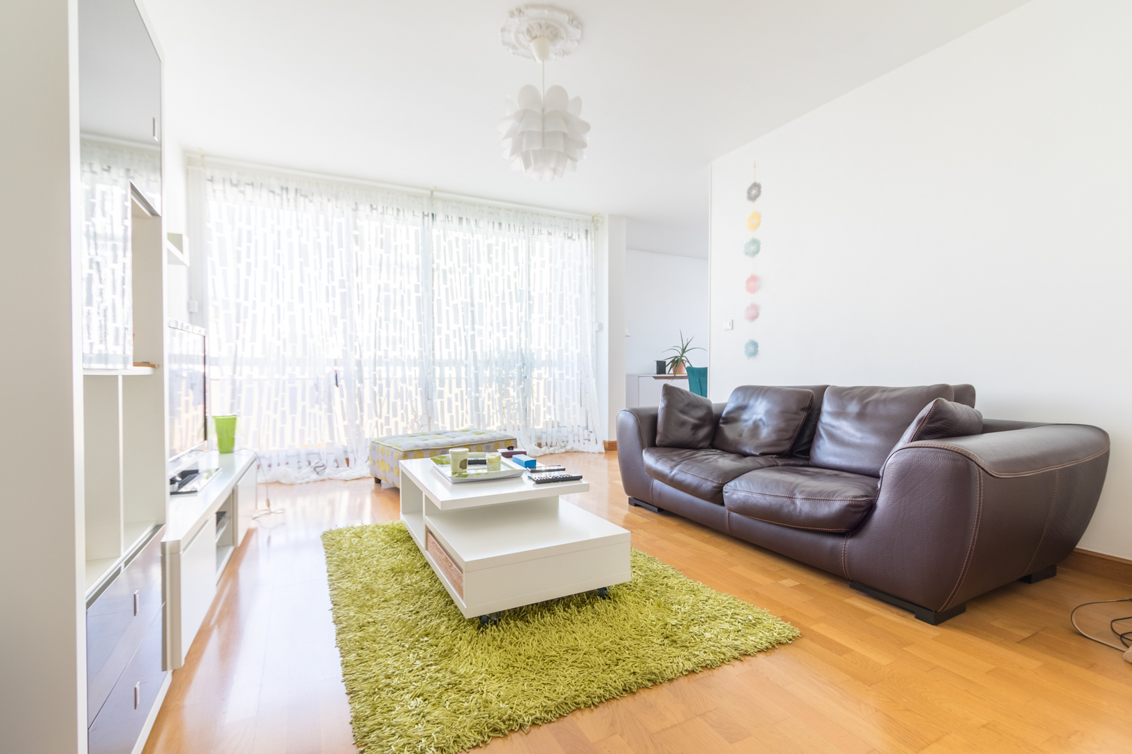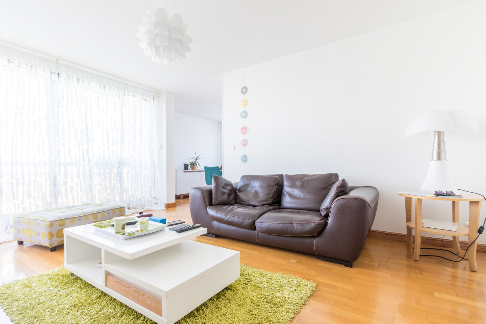 Pièce à vivre avec belle hauteur sous plafond et grande baie vitrée donnnant sur terrasse.