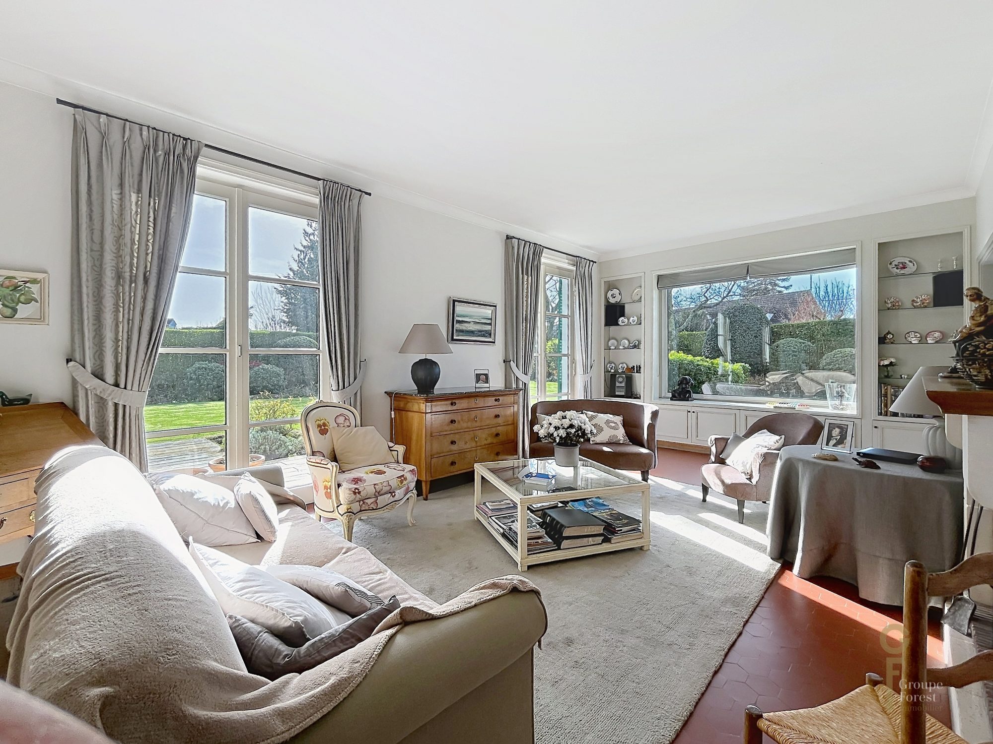 Idéalement située dans le plus bel emplacement de Bondues, en fond d'allée privée, cette magnifique maison d'architecte aux allures de fermette a été construite en 1976 et rénovée en 2023 avec de superbes matériaux.