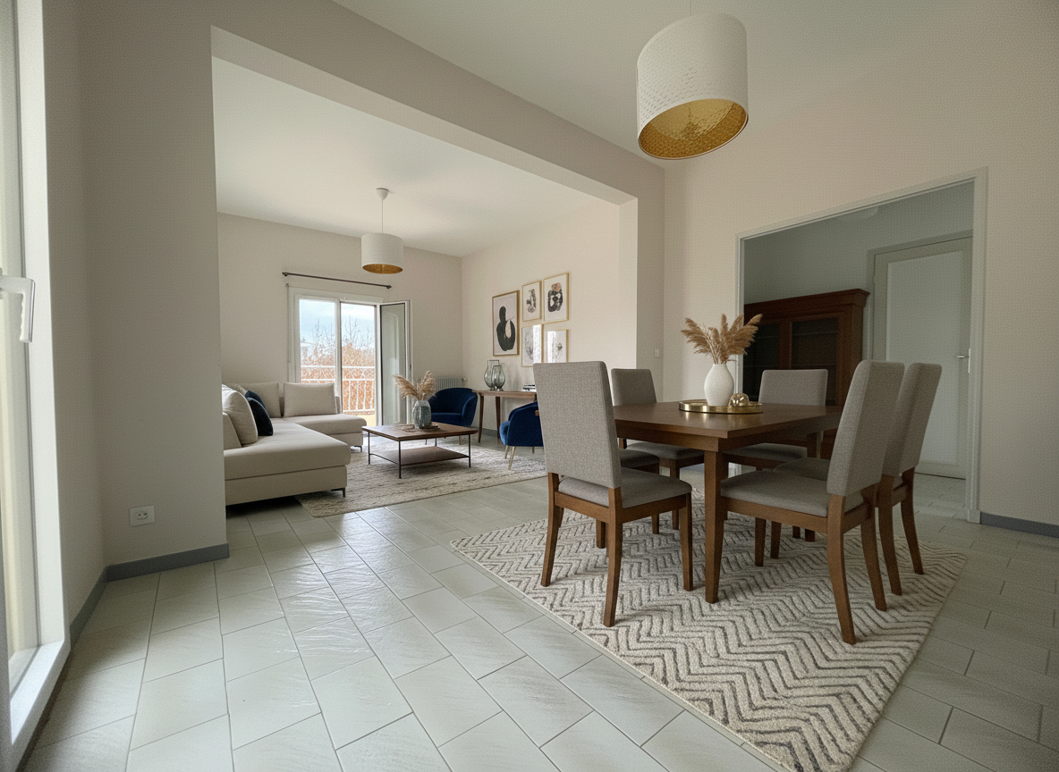 - Salle à manger conviviale, ouverte sur une cuisin...