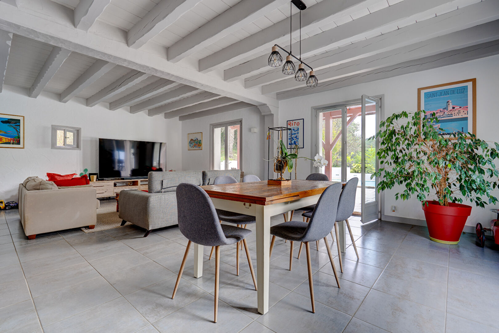 Située dans le quartier prisé d'Olhette, à seulement 10 minutes de Saint-Jean-de-Luz, cette maison rénovée allie confort, nature et convivialité, dans un cadre bucolique particulièrement apaisant.