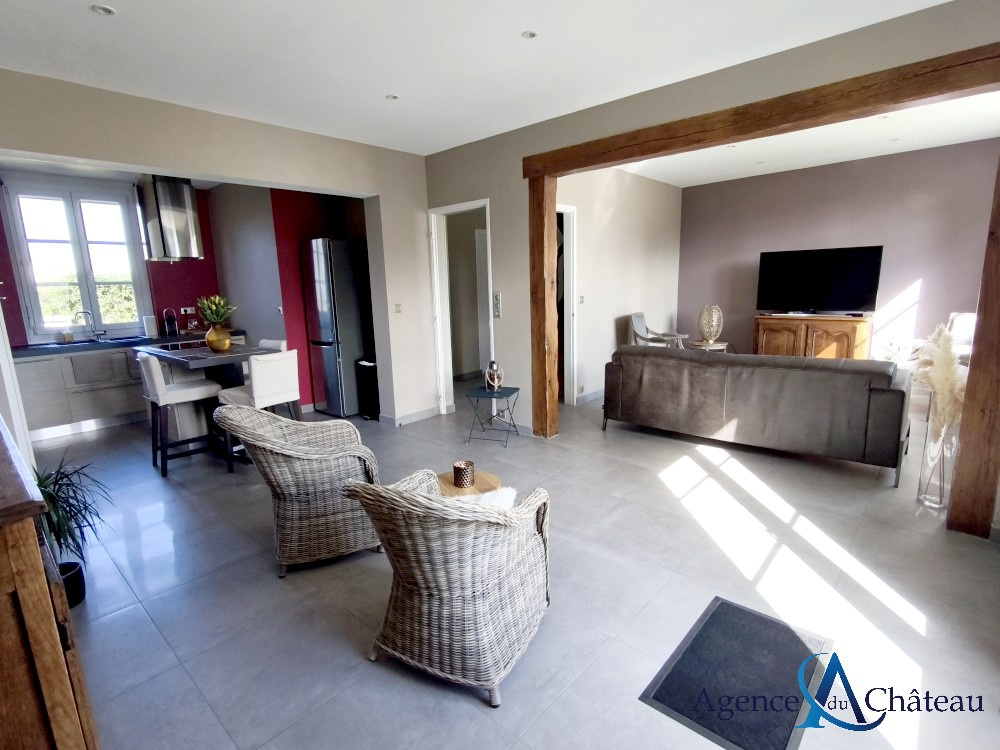 En exclusivité. Commerces et ecoles à pied. Jolie maison en très bon état, lumineuse avec un intérieur soigné, offrant au rez-de-chaussée : une entrée avec placard, un séjour double avec cuisine équipée ouverte, une salle de douche équipée, un wc, à l'éta...