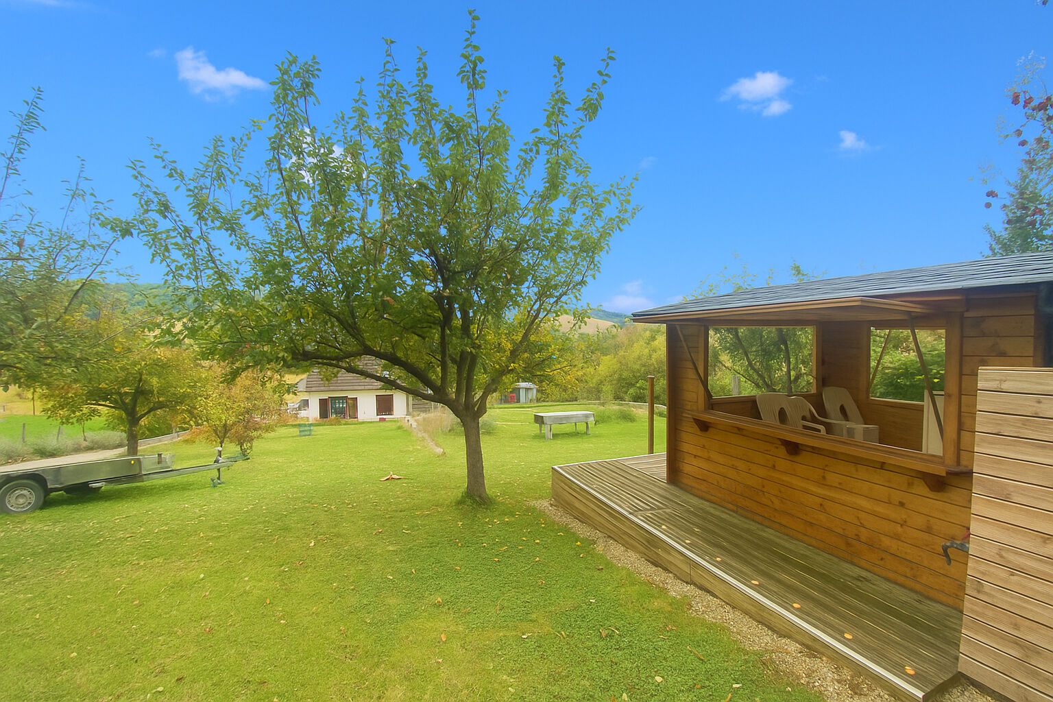 Côté jour, la maison se compose d'une belle pièce de vie lumineuse avec vue sur le beau terrain clos et arboré, d'une cuisine aménagée -...