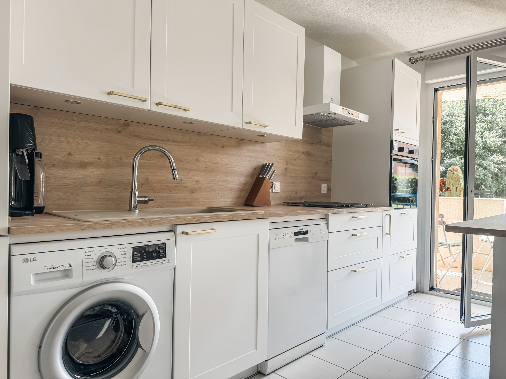 Belle maison mitoyenne de 60 m2 entièrement climatisée, rénovée avec goût, exposée Sud/Est au calme.