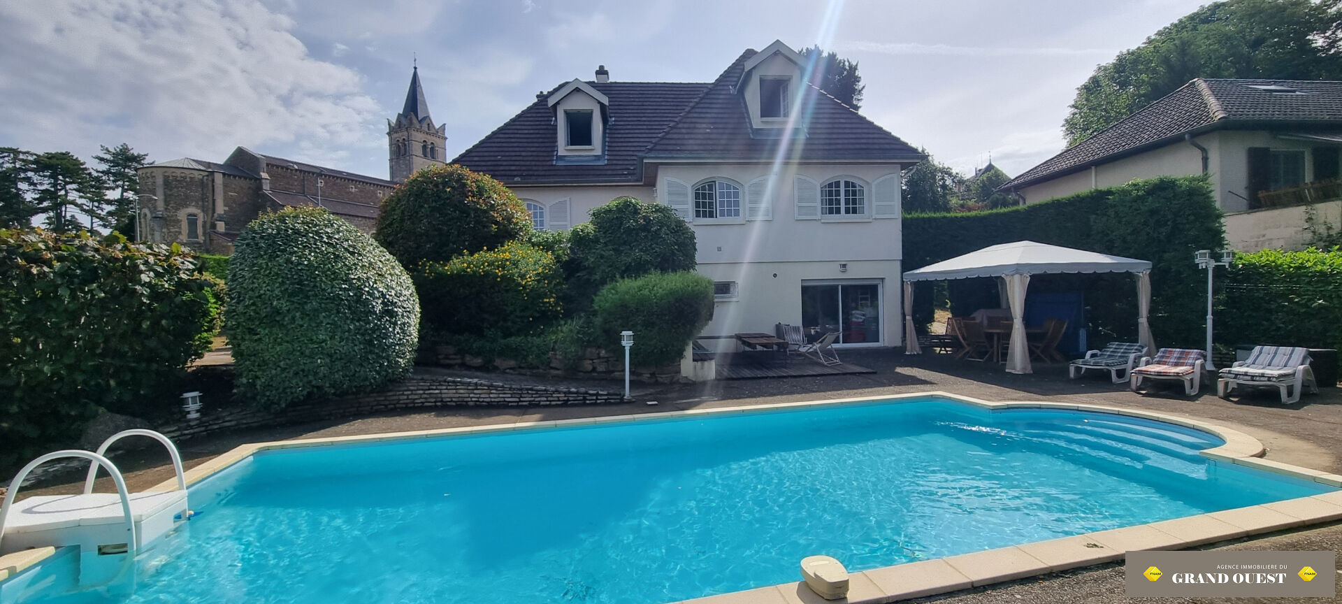 Limite Chazay d'Azergues : Bel environnement pour cette maison climatisée d environ 151m² avec piscine récente, pool house sur un terrain de 1192m². Elle vous propose entrée, séjour ouvrant sur la terrasse de 150 m², salle à manger avec poêle , cuisine...