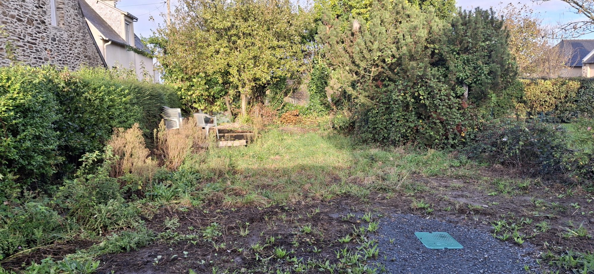 Cancale, quartier Terrelabouet, grand terrain à bâtir de 1913 m2. Sur ce terrain, il existe une petite maison en bois et placo à rénover, étendre ou à démolir selon vos projets. Toute la parcelle est constructible.
