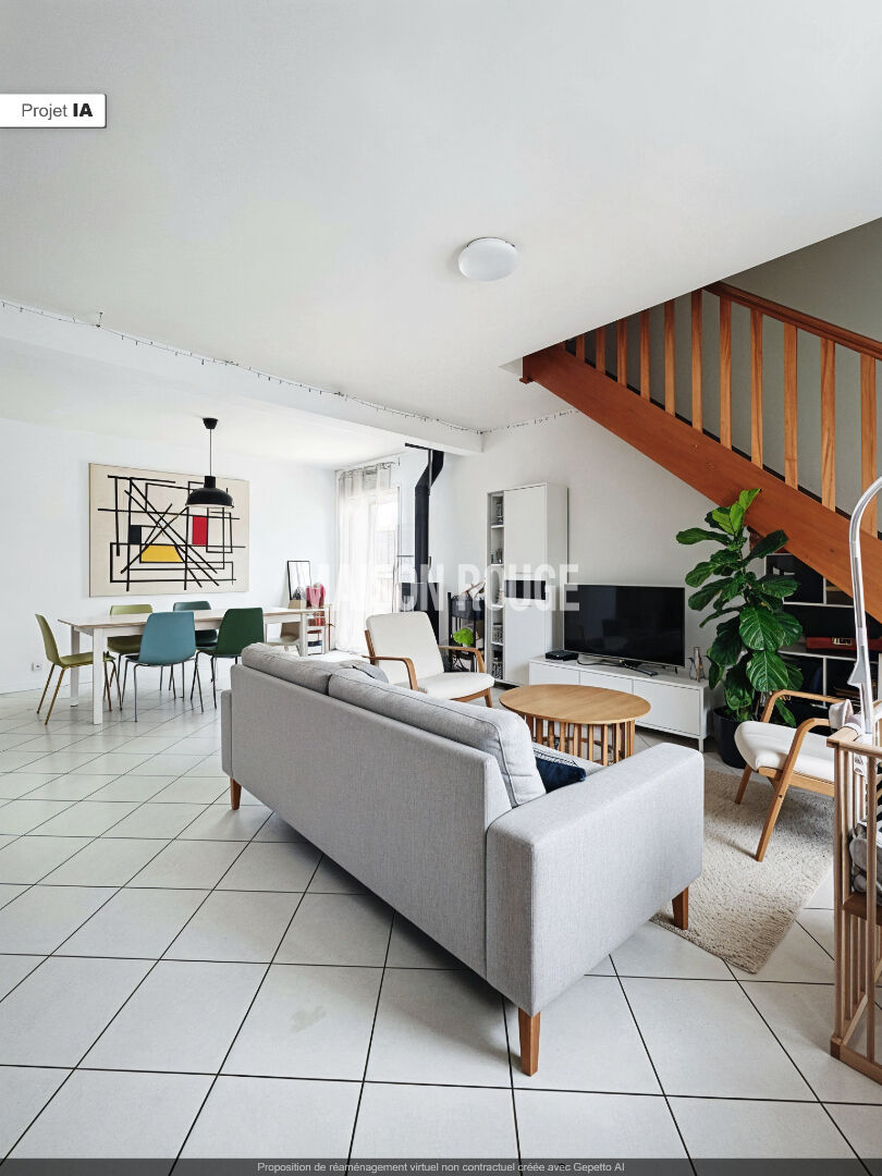 Maison non mitoyenne sur sous-sol comprenant une entrée desservant une cuisine indépendante aménagée et équipée, ainsi qu'une belle pièce de vie lumineuse avec cheminée insert.