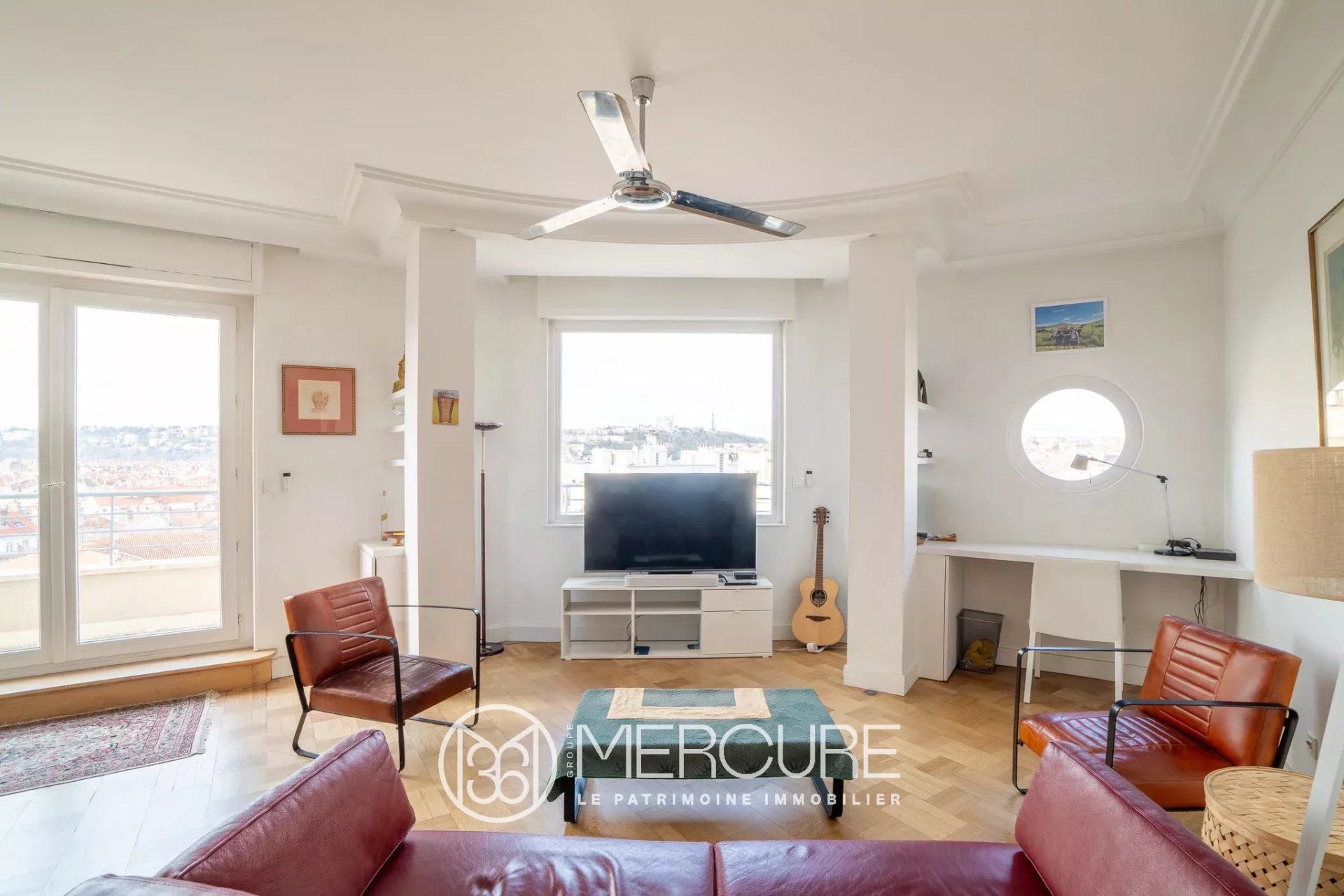 En dernier étage, très agréable appartement de 75,25 m² en bon état offrant une vue magnifique sur Lyon, les Monts du Lyonnais et le Bugey.
