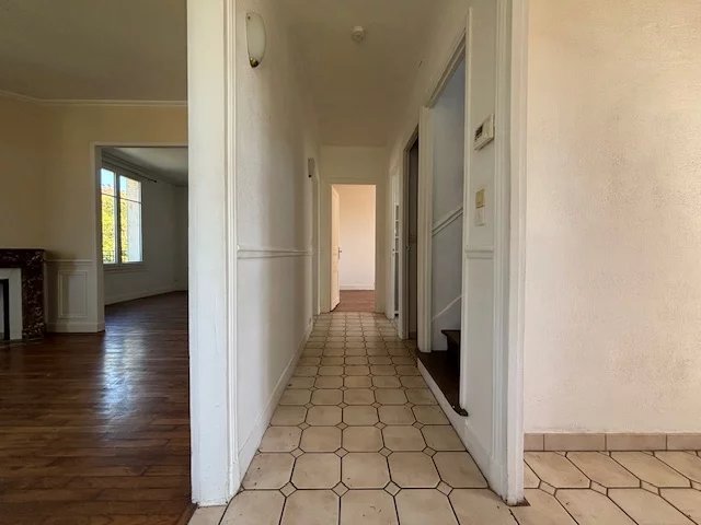 Dans un quartier calme et recherché, à deux pas de la gare et des écoles, maison comprenant : séjour double avec poêle à bois, une cuisine aménagée, dégagement, WC. À l'étage, palier, trois grandes chambres, dressing, une salle de bains et un WC. Un garag...