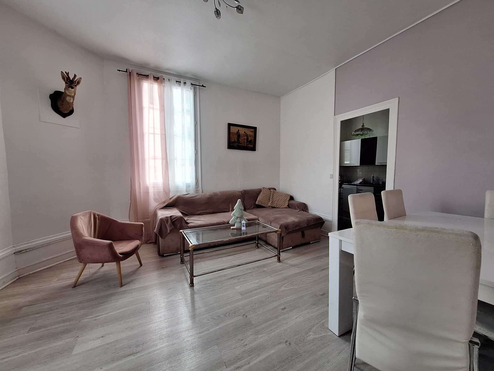 Appartement en copropriété avec ascenseur, en bon état avec balcon, situé dans un quartier avec commerces et transports en communs à proximité. Composé d'une entrée, une cuisine aménagée, un séjour double, un dégagement avec trois chambres, une salle de b...