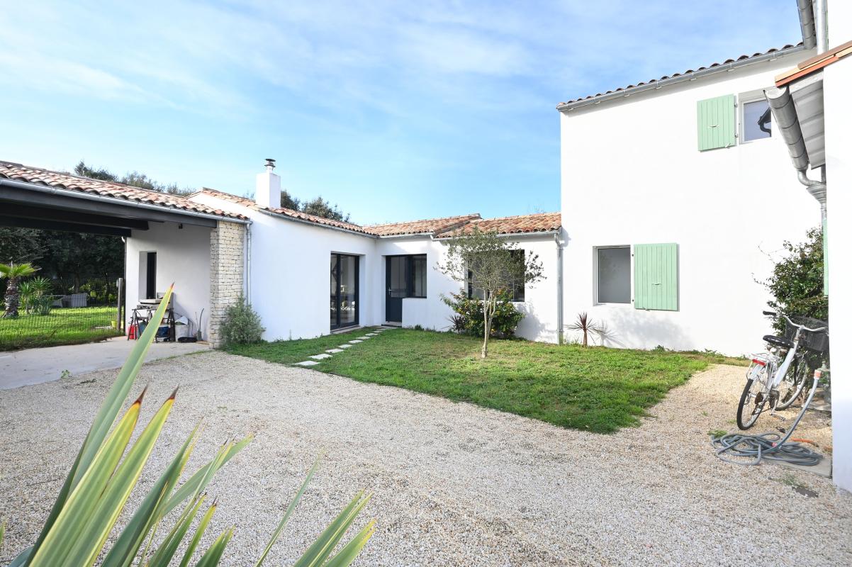 Immobilier Ile De Ré, maison récente (2021) de 143 m² à La Flotte, idéalement située en bordure d'une zone naturelle. En excellent état, elle propose 4 chambres dont une en rez-de-chaussée, un jardin privatif sur plus de 800 m², garage fermé et parkings i...
