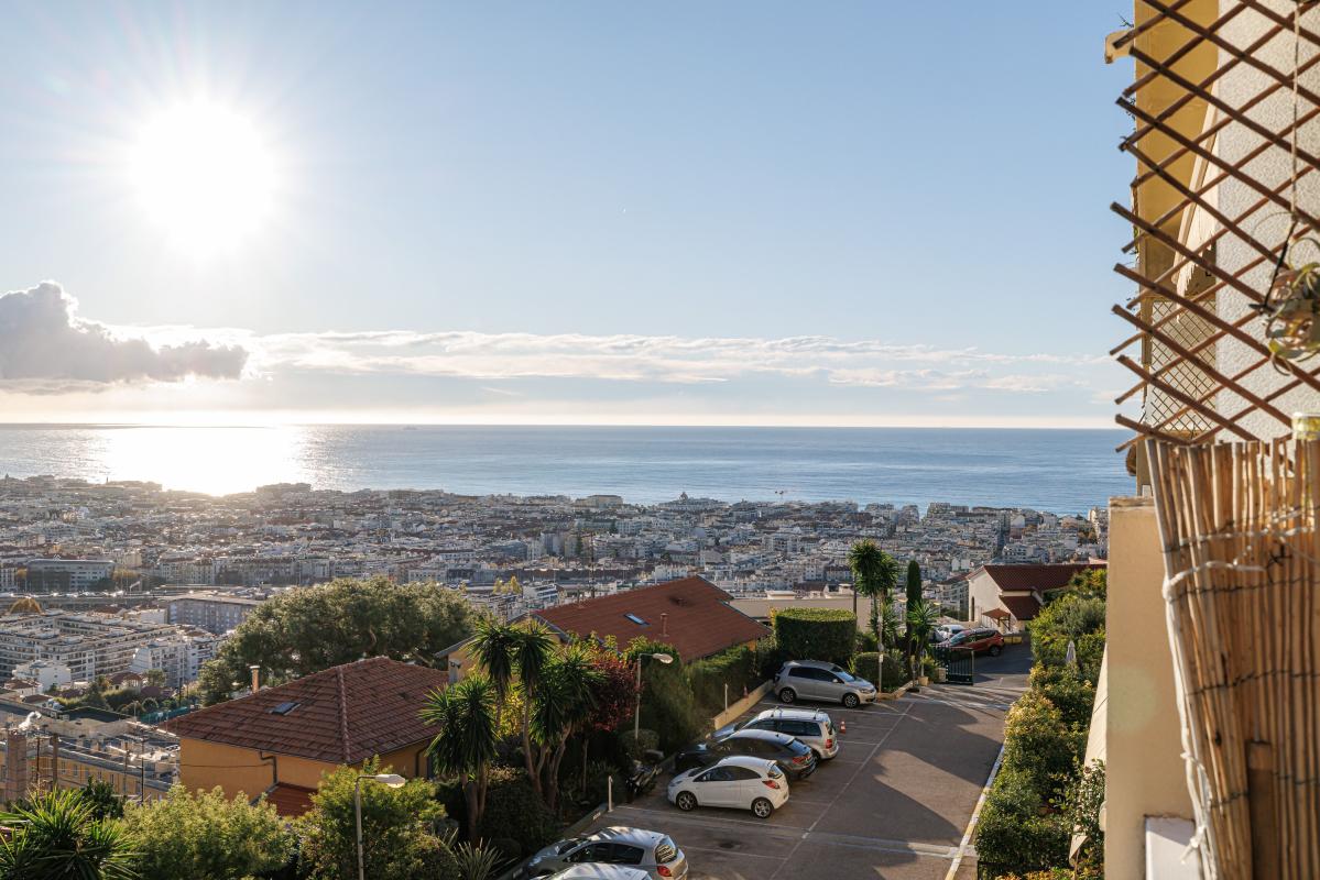 NICE - SAINT MAURICE : Lumineux trois pièces au 6ème et dernier étage avec une terrasse panoramique de 50 M2 avec vue dégagée et véranda.