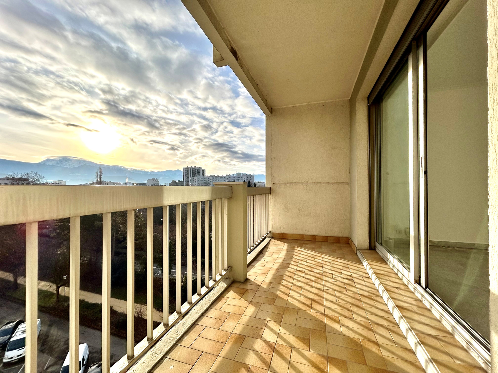 Grenoble - 8 rue Maurice Dodero : Dans une copropriété bien tenue, isolée et ravalée, T4 de 80m2 comprenant entrée, pièce de vie avec accès à un balcon de 6m2 exposé au Sud, cuisine indépendante, trois chambres, salle de bains et WC.