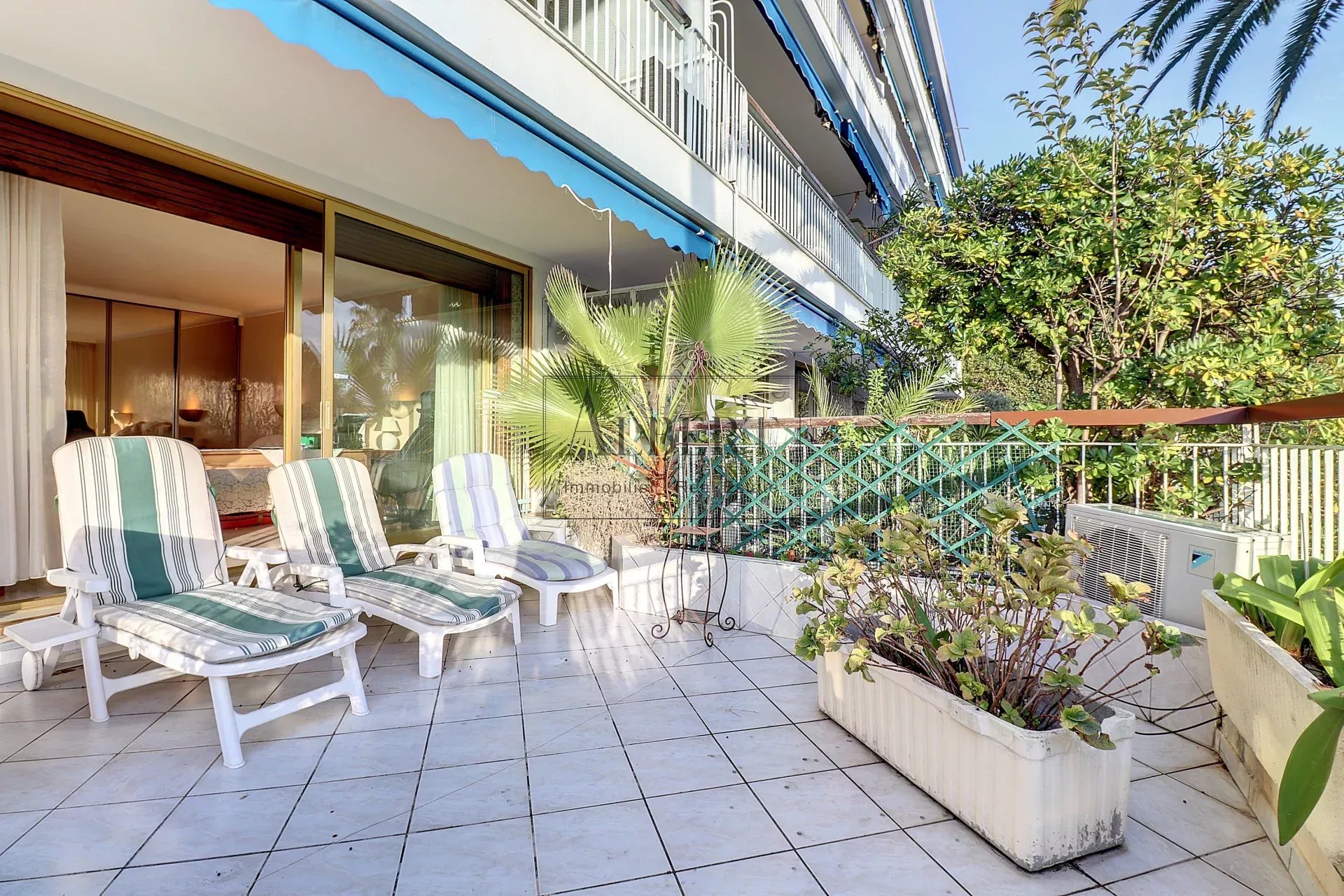 Situé en plein cœur du quartier renommé du Palm Beach, sur la place de l'Etang, au dernier étage d'une résidence calme et sécurisé par un gardien, à 50m des plages et au pied des commerces.