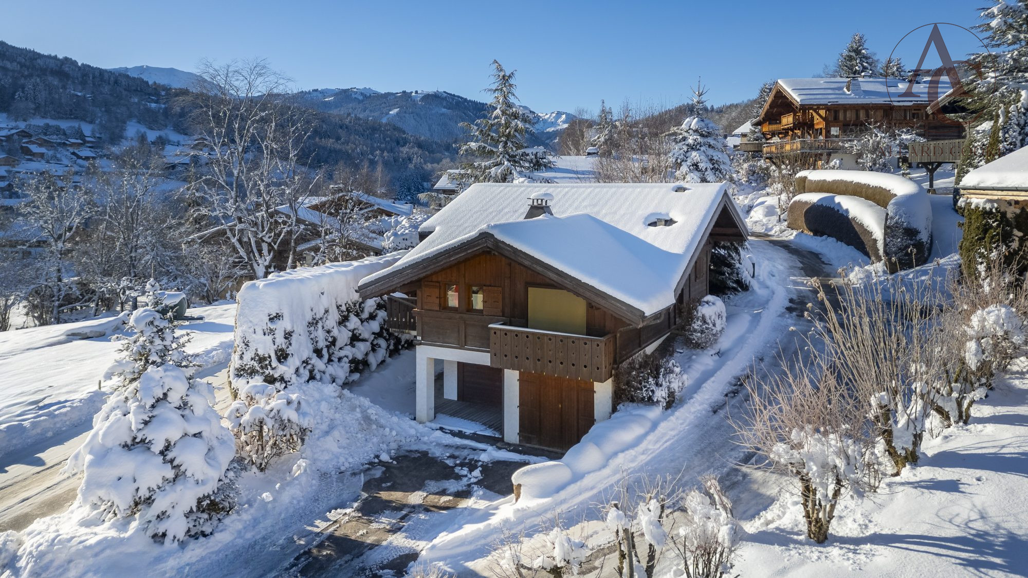 Situé dans un hameau savoyard résidentiel proche du centre de Megève, ce chalet mitoyen en copropriété offre une surface selon la loi Carrez de 142,38 m², répartie sur deux niveaux niveaux plus combles et sous-sol, avec un jardin à jouissance privative.