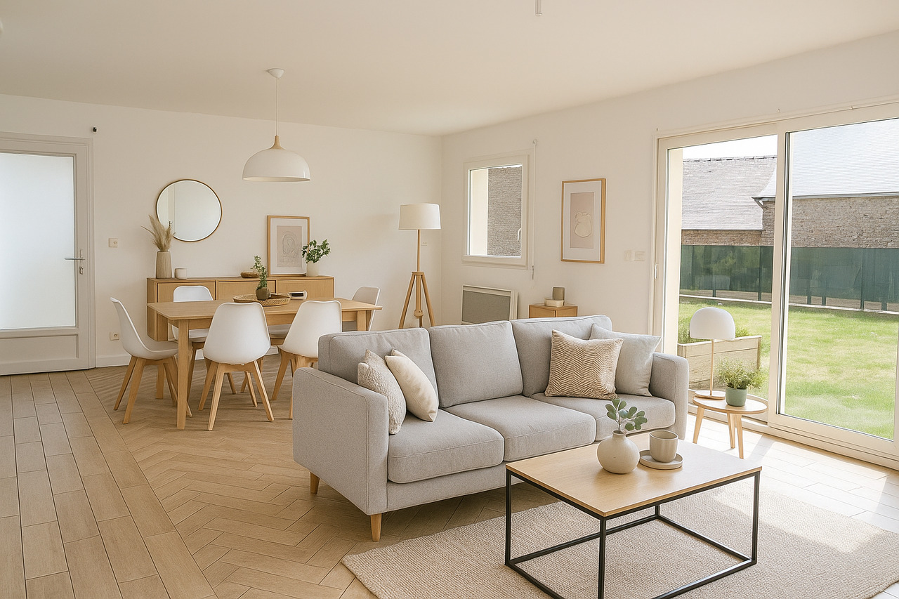 PLÉRIN, Maison de plain-pied de 2014 sur un terrain de 1273 m², comprenant : séjour salon 41 m² avec poêle à granulés, cuisine équipée à l'américaine, 4 chambres dont une avec salle d'eau privative possible, salle d'eau et WC. Garage avec grenie...