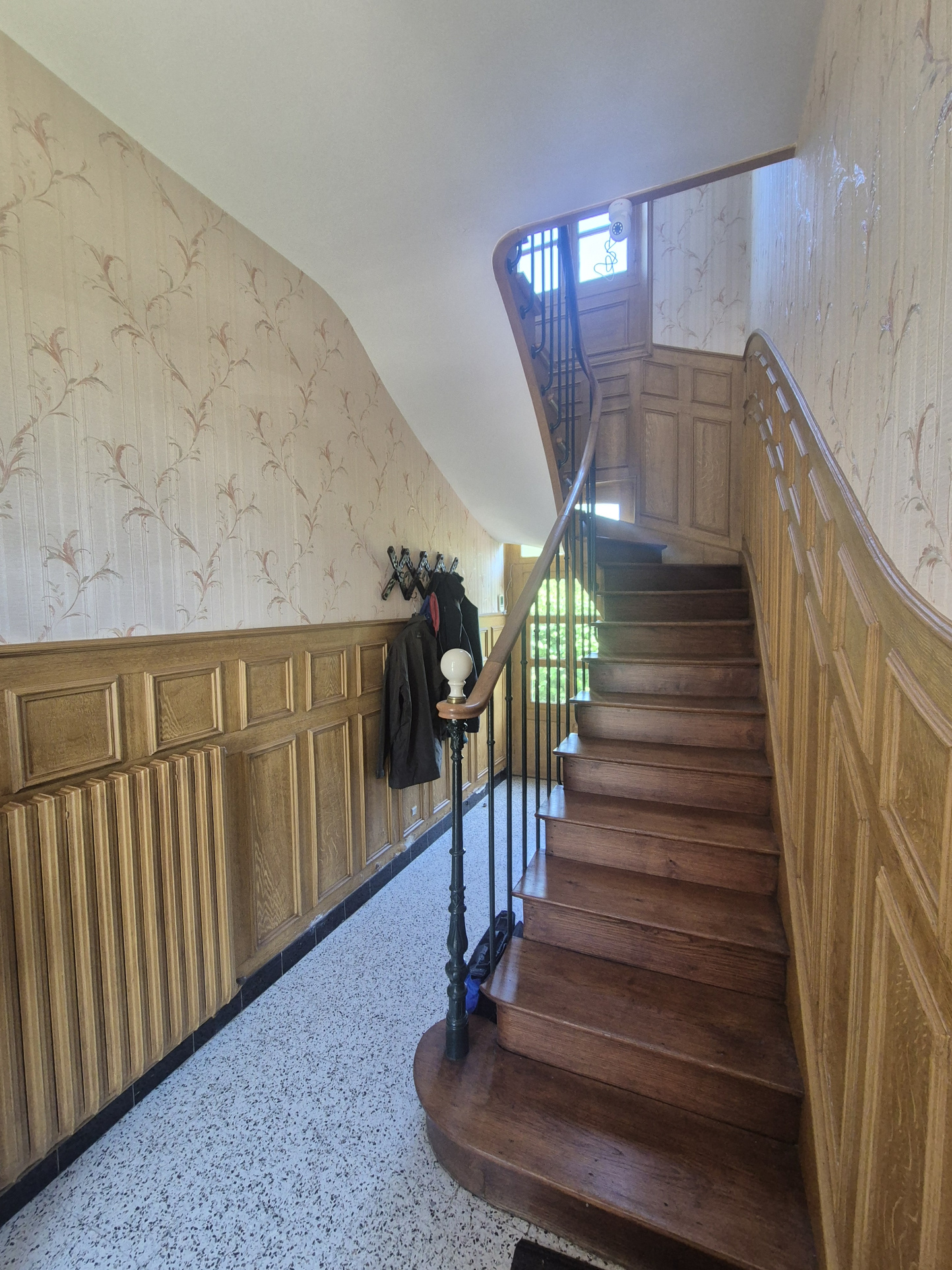 Maison bourgeoise d'une superficie de 135 m2. Elle se compose d'une entrée, bureau, w.c, salle d'eau, un salon avec cheminée (20m2), cuisine aménagée avec c...