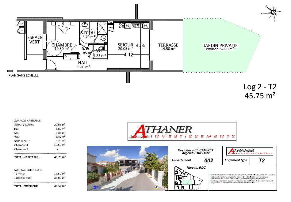 De Type 2 Pièces, il totalise 46m2 et il est doté d'un Jardin Privatif de 34m2 plein SUD.
