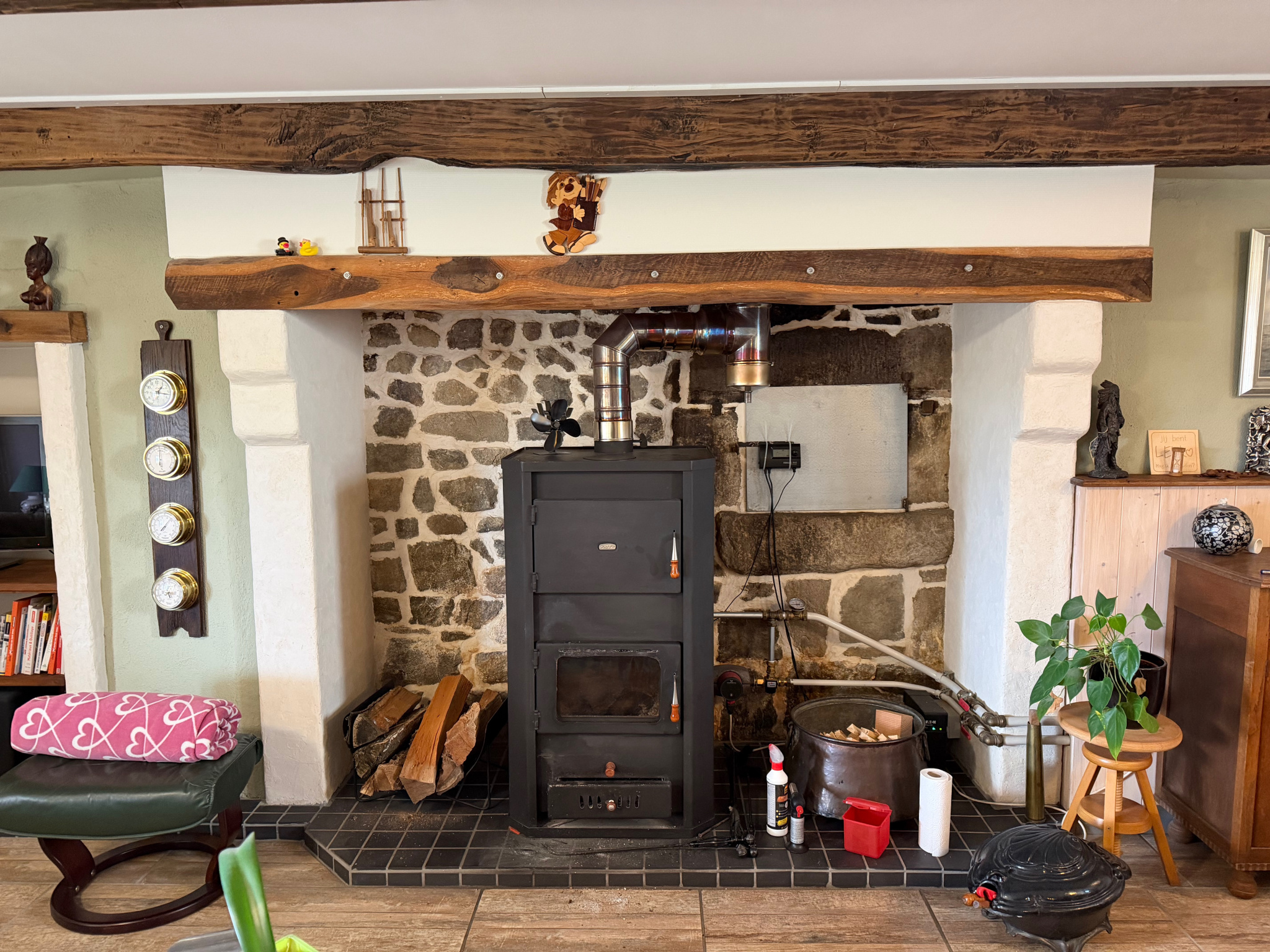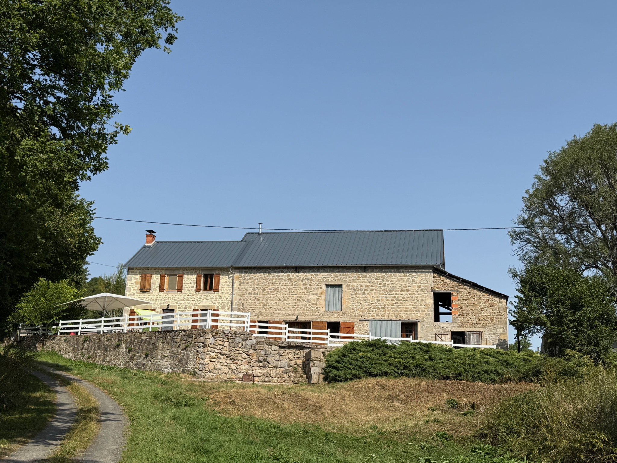 Auv 1193 : Maison au calme avec gîte, puits, beau terrain 5.340m2 Cet ensemble est resté inoccupé depuis un certain temps et doit donc être remis en état et poursuivi dans sa rénovation. La partie droite de la toiture a été entièrement refaite cette année. La ...