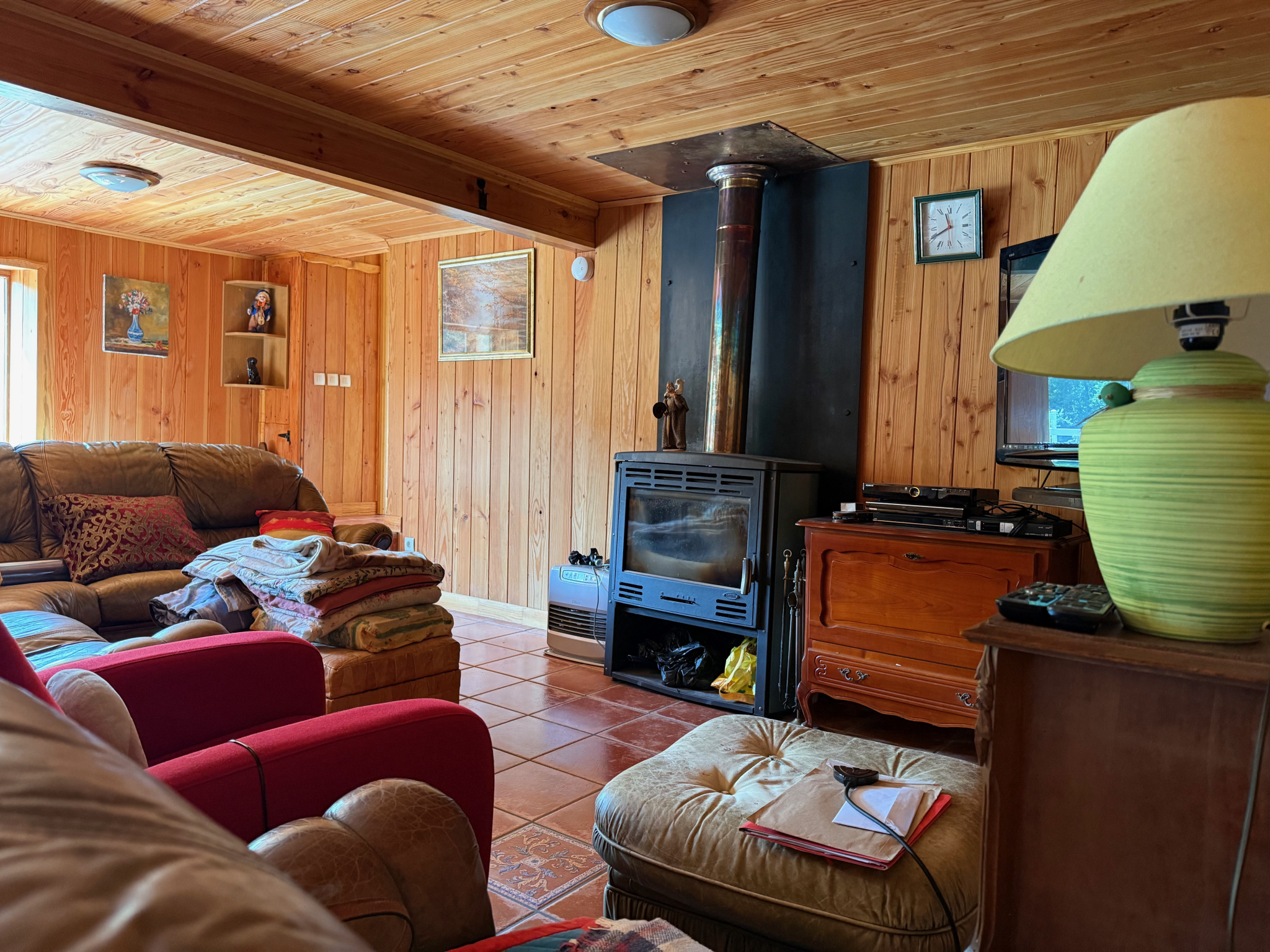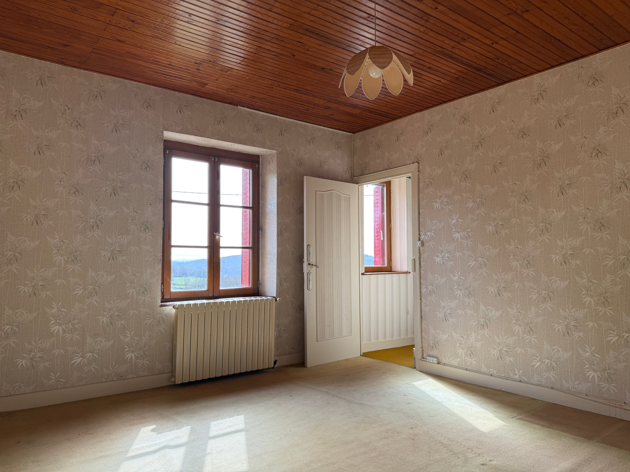 Auv 1164 : Maison habitable, terrasse, vue, bois, 2950m2 au total. Cette maison jumelée à l'origine a été partiellement rénovée en une seule grande maison et se trouve sur un terrain de 465m2. Il y a une petite dépendance et une grande terrasse carrelée a...