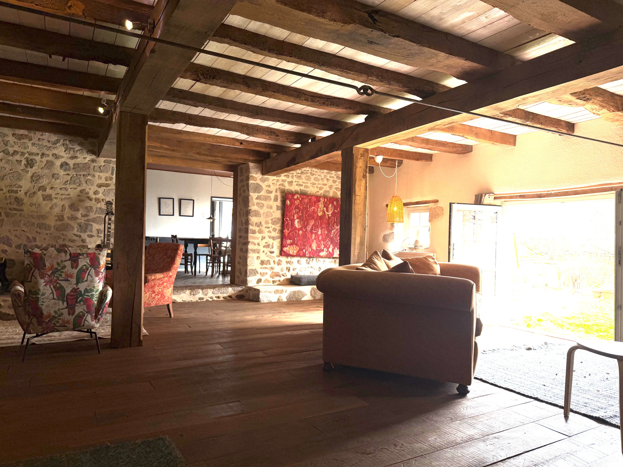 Auv 1211 : Maison entièrement rénovée, garage, coins détente, vue ! Cette magnifique maison en pierre naturelle, offrant une vue dégagée jusqu'au Puy-de-Dôme, a été entièrement rénovée. Elle dispose de quatre chambres et de quatre salles de bains, est imm...