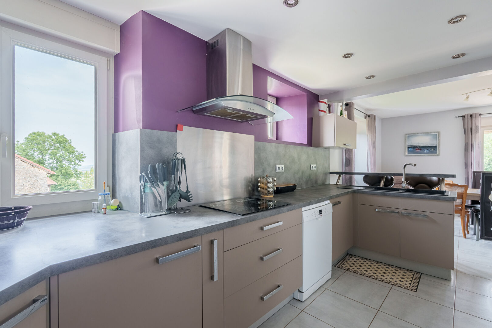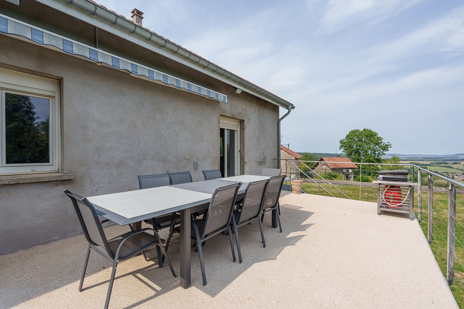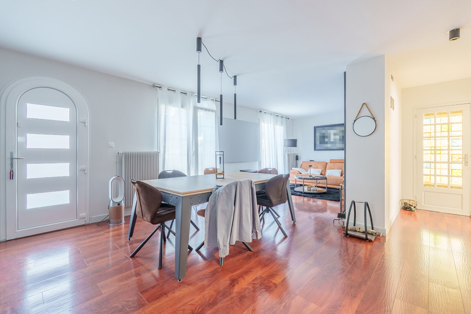 Au niveau principal, la pièce de vie baignée de lumière s'ouvre sur une belle terras...