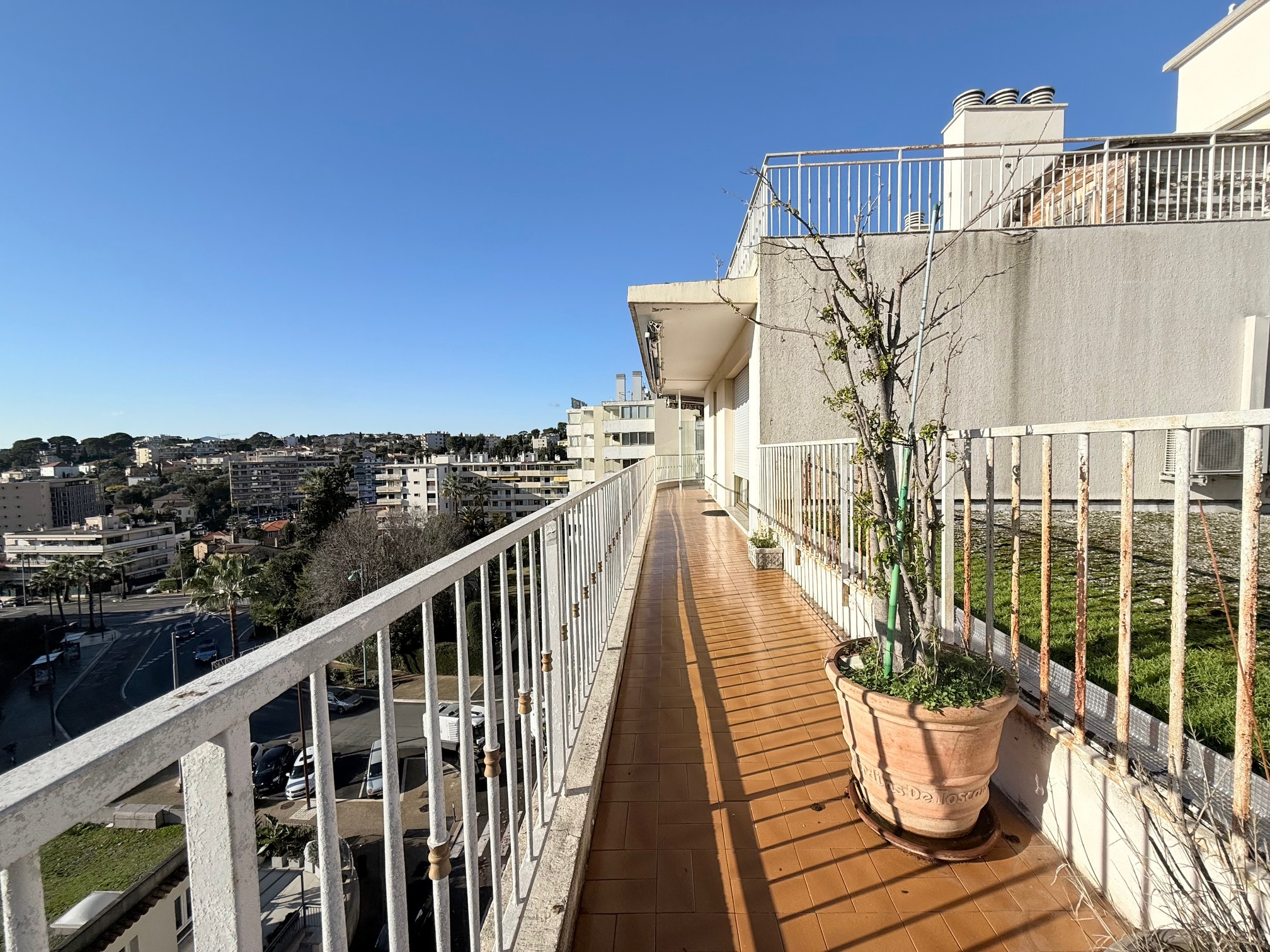 Au coeur des commodités et à deux pas du Cannet historique, vaste et lumineux 3 pièces de 95 m2 en étage élevé, ouvert sur une spacieuse terasse de 43 m2, dans une résidence sécurisée de bon standing, offrant une vue dominante et dégagée sur la mer. Il se comp...