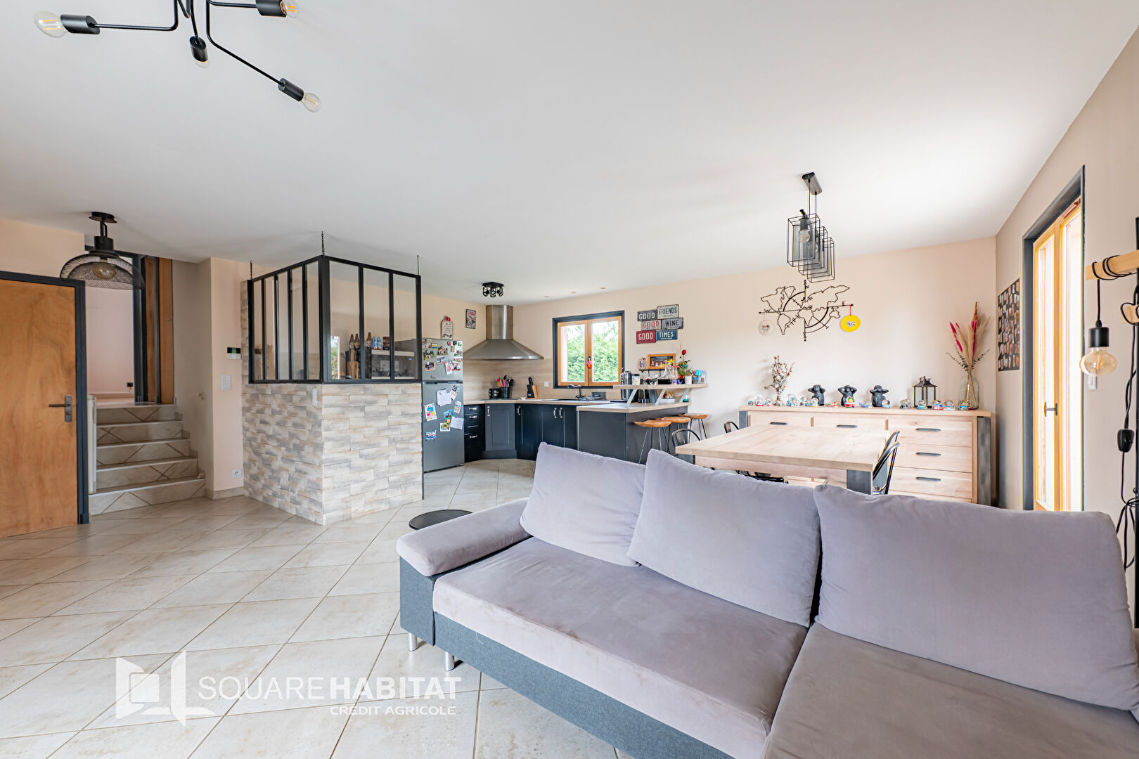 Un séjour lumineux avec cuisine ouverte