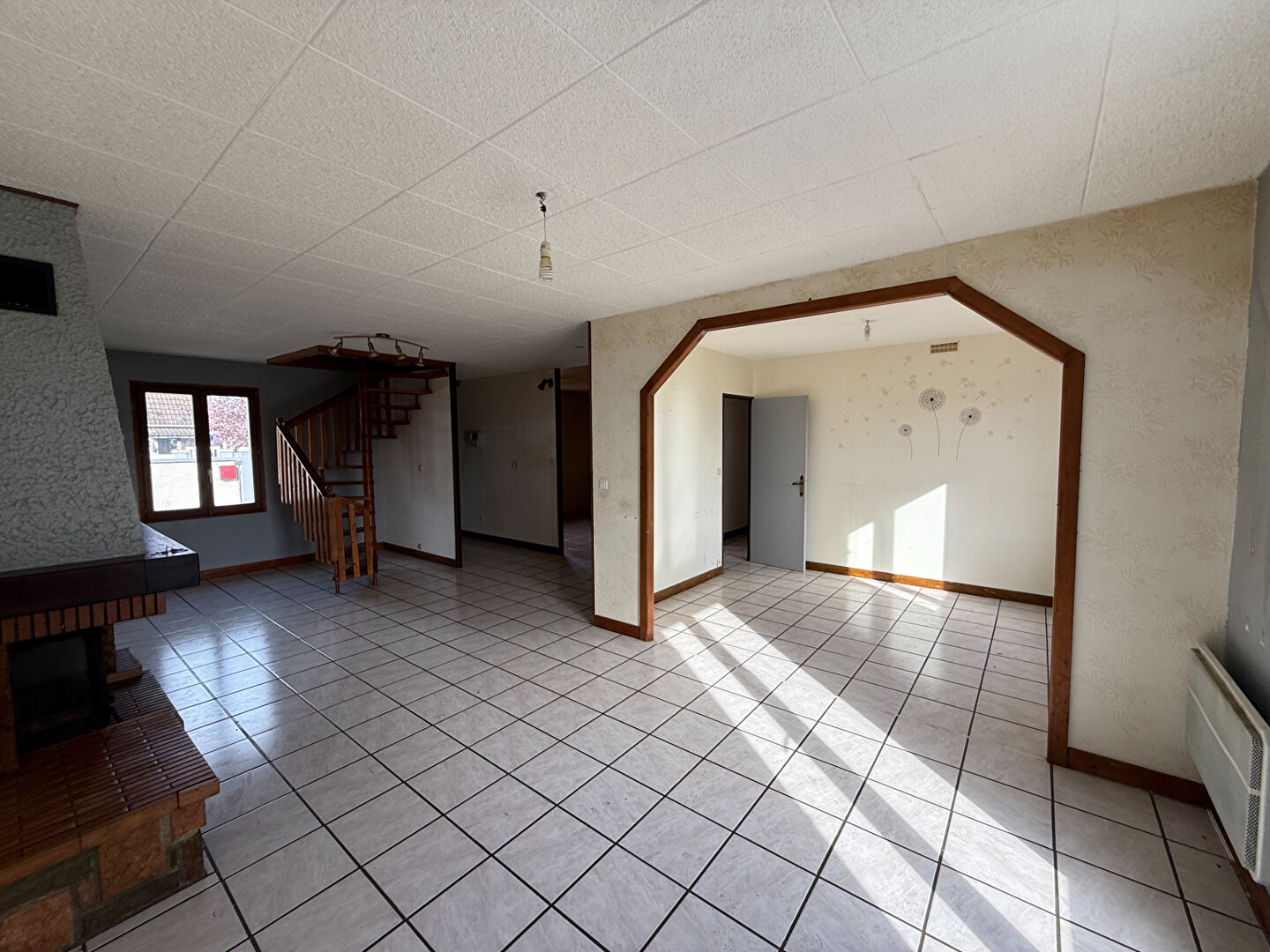 Dès l'entrée, la maison dévoile une belle pièce de vie lumineuse et chaleureuse, équipée d'un insert bois, offrant un espace agréable pour le quoti...