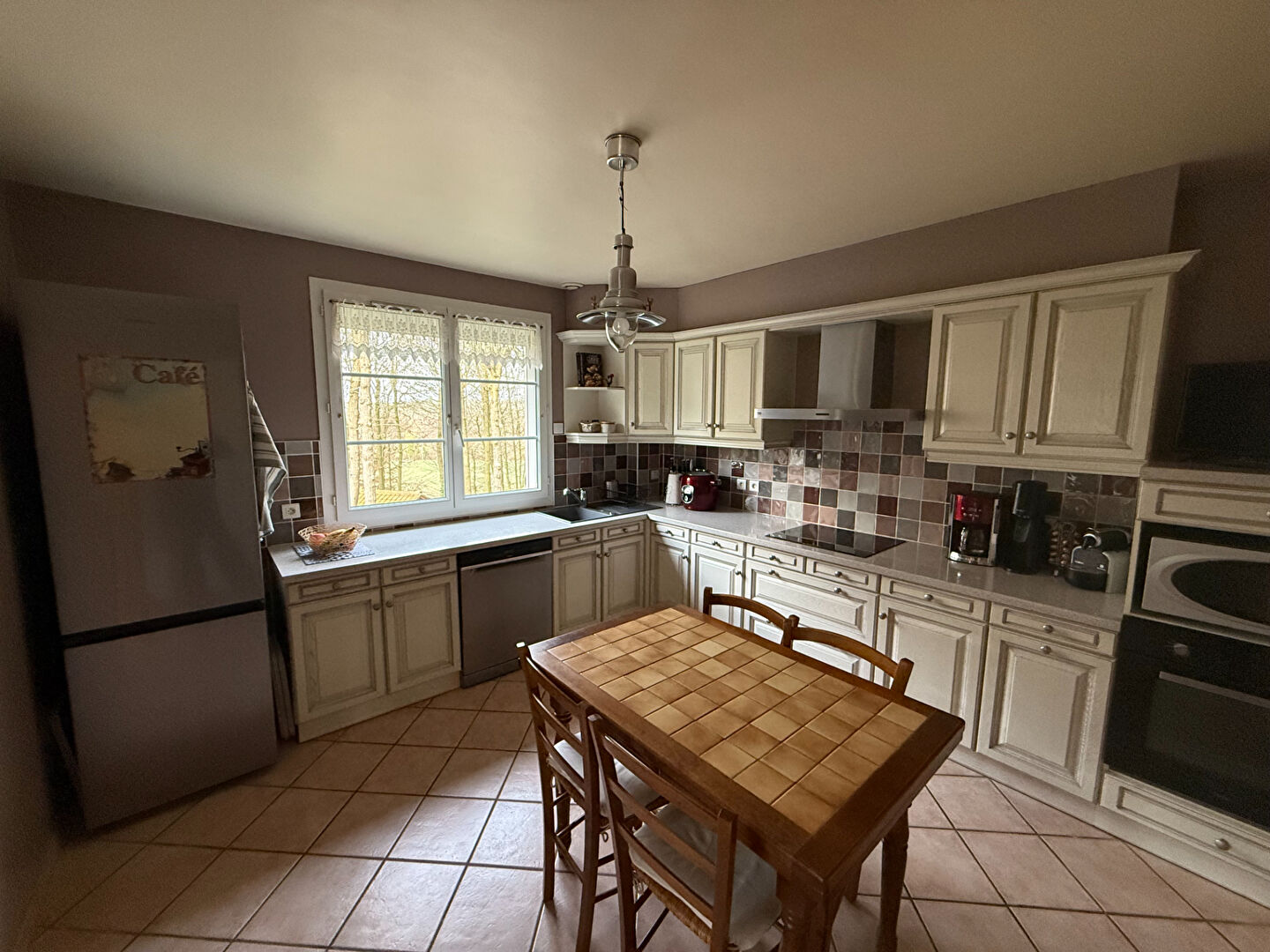 Dès l'entrée, la maison dévoile une belle pièce de vie lumineuse et chaleureuse, équipée d'un insert bois, offrant un espace agréable pour le quoti...
