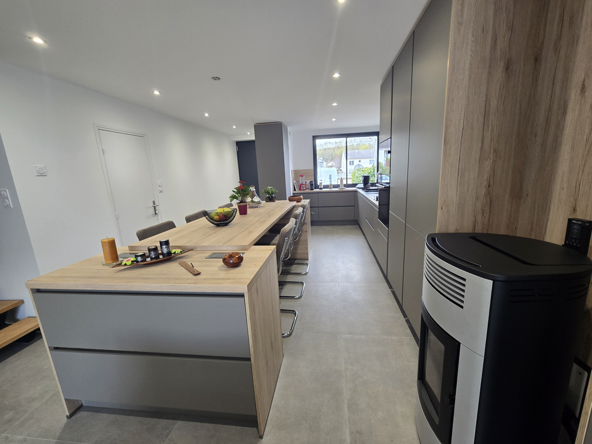 Au niveau principal (surface de 82m2) : une entrée, un salon-séjour de 28m2 avec accès ter...