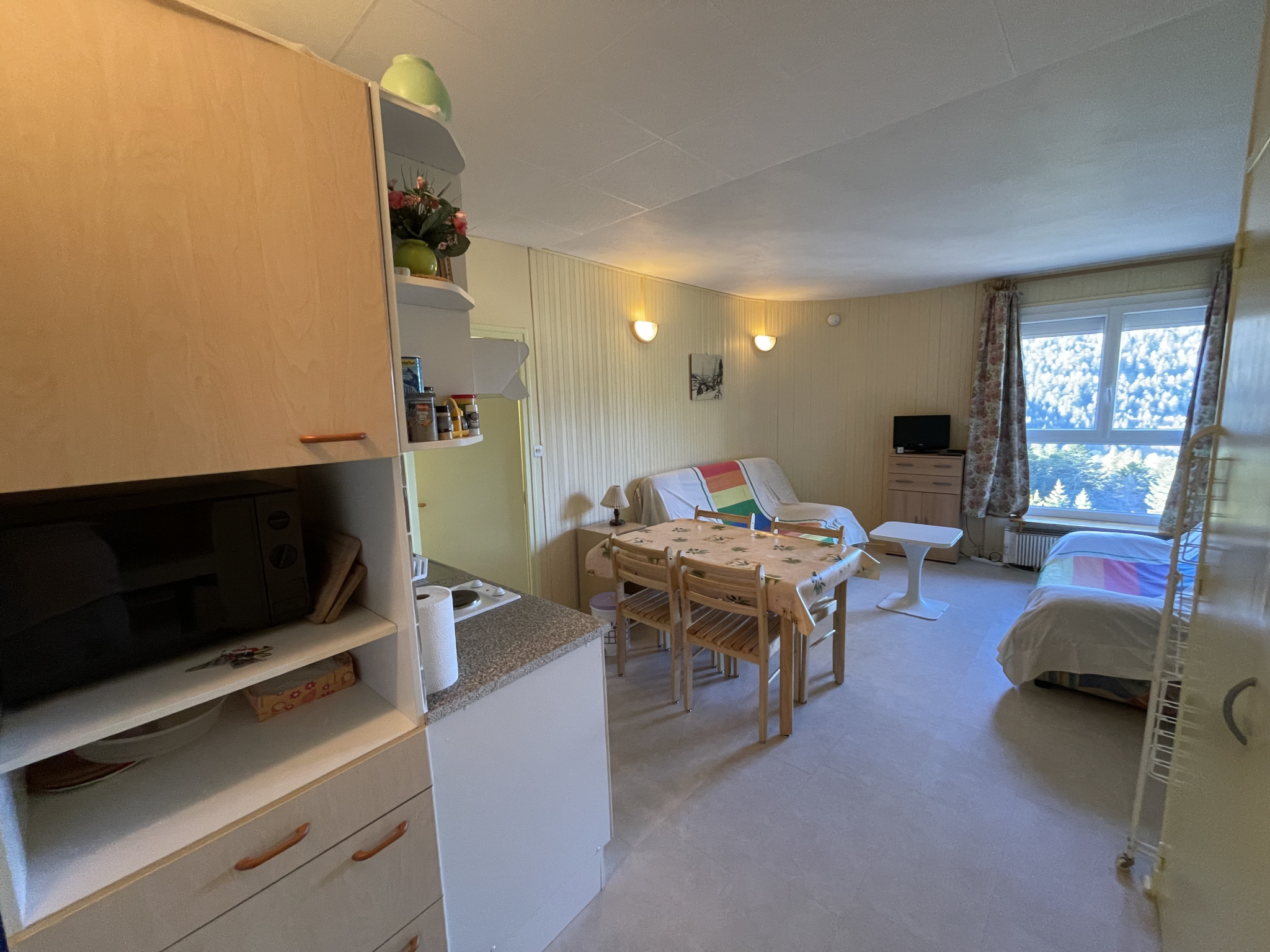 Spacieux studio de 28m2 situé sur le secteur de font d'alagnon. Départ des pistes et commerces aux pieds de la résidence ! Le studio est composé d'une entrée avec un coin cabine, d'une salle d'eau, wc, d'une pièce principale avec cuisi...