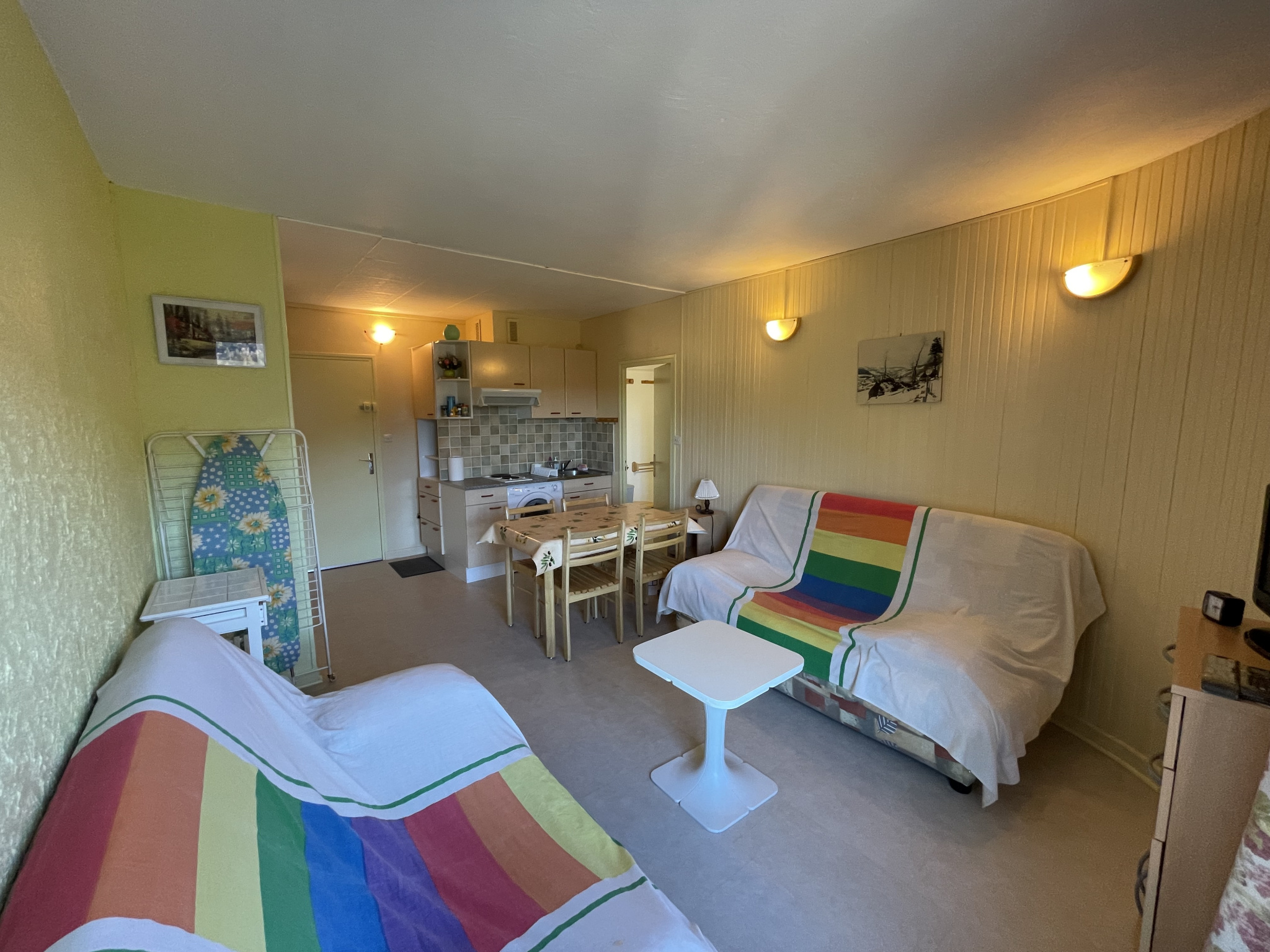 Studio balcon de 30m2 situé en plein coeur de la station. Composé d'une entrée avec coin cabine, d'une salle de bain avec WC et d'une cuisine ouverte sur la pièce de vie et donnant accès au balcon. Des travaux de rénovation sont à prévoir pour e...