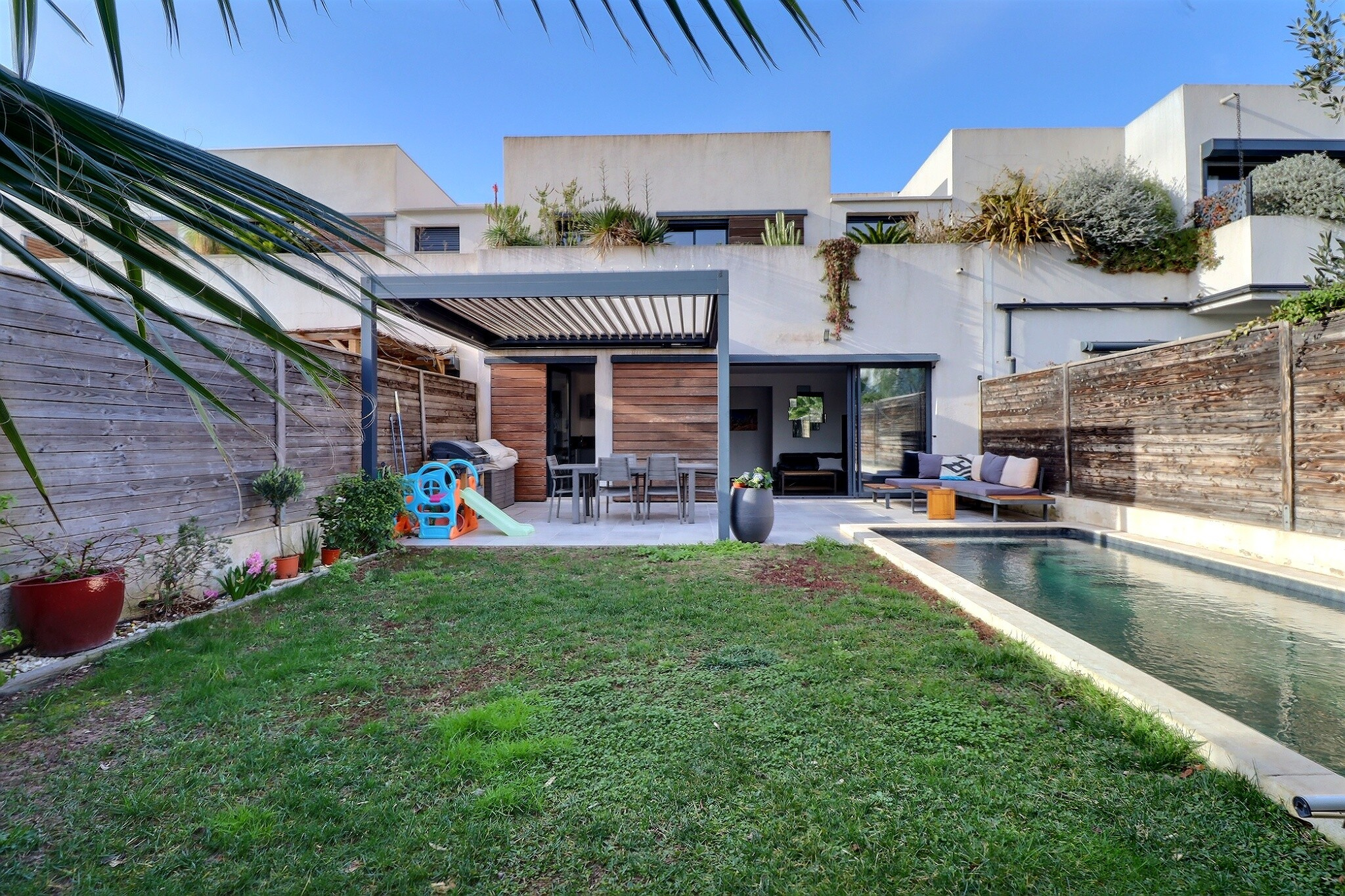 Proche Bd Océan/Morgiou 13009 MARSEILLE - Au calme abolu, dans un lotissement sécurisée, sur une parcelle de terrain de 210 m2, Maison T4 contemporaine de 108 m2, composée d'un séjour avec cuisine équipée. Cette réception donne accès à un jardin paysager ...