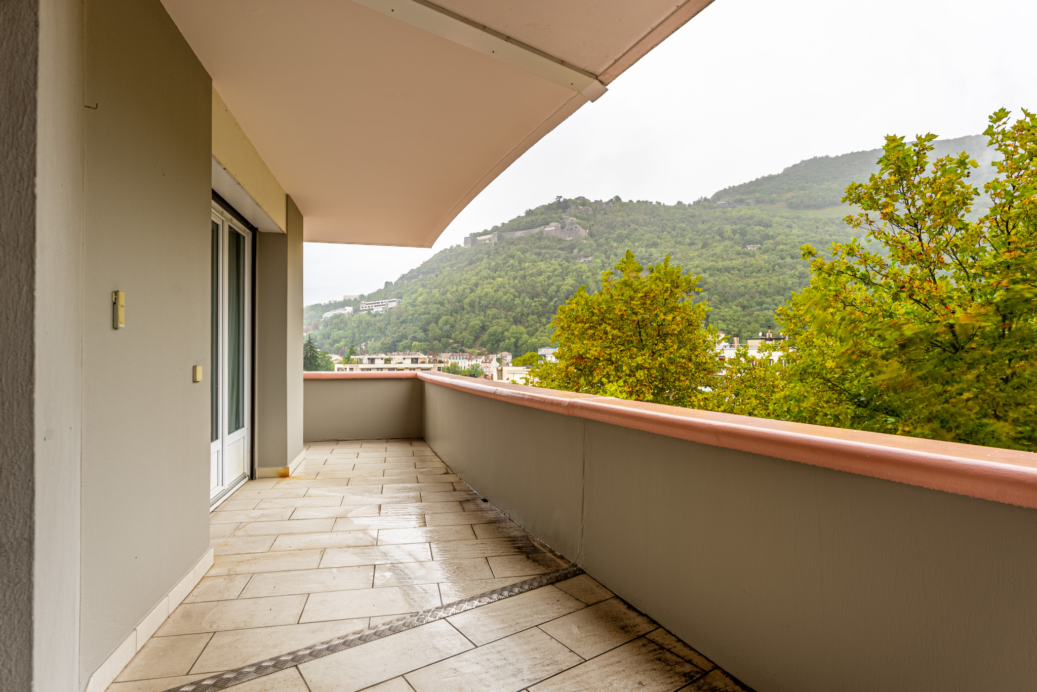 Ile Verte - dernier étage, bel appartement aux dimensions importantes pour un T4 bénéficiant d'une terrasse et d'un balcon filant assez profond avec vue sur la ville de Grenoble et les massifs environnants. Bâtiment aux normes PMR. Année de construct...