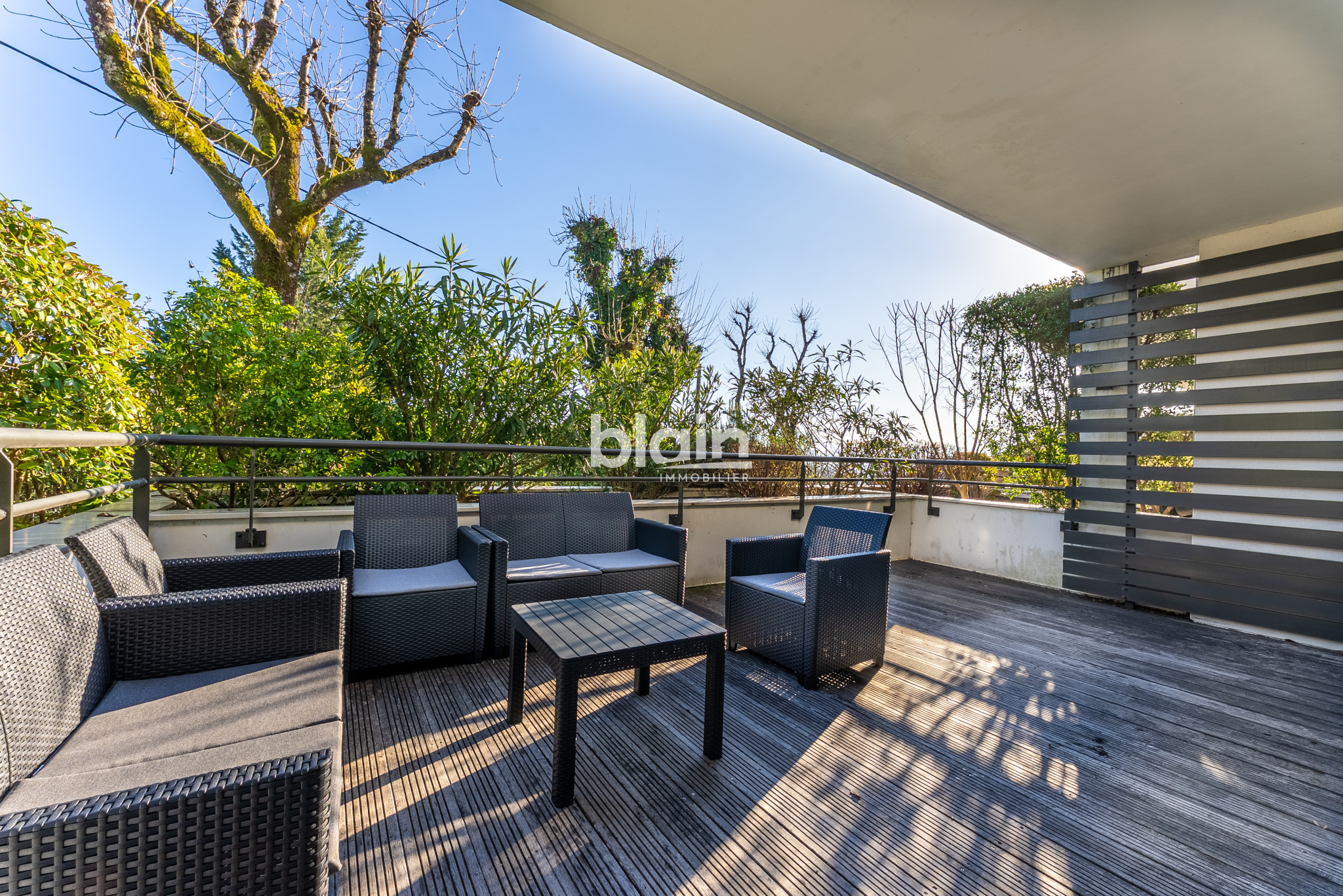 L'appartement est traversant Est/Ouest avec un grand blacon filant sur le salon avec ses grandes baies vitrées et une petite terrasse donnant sur ...