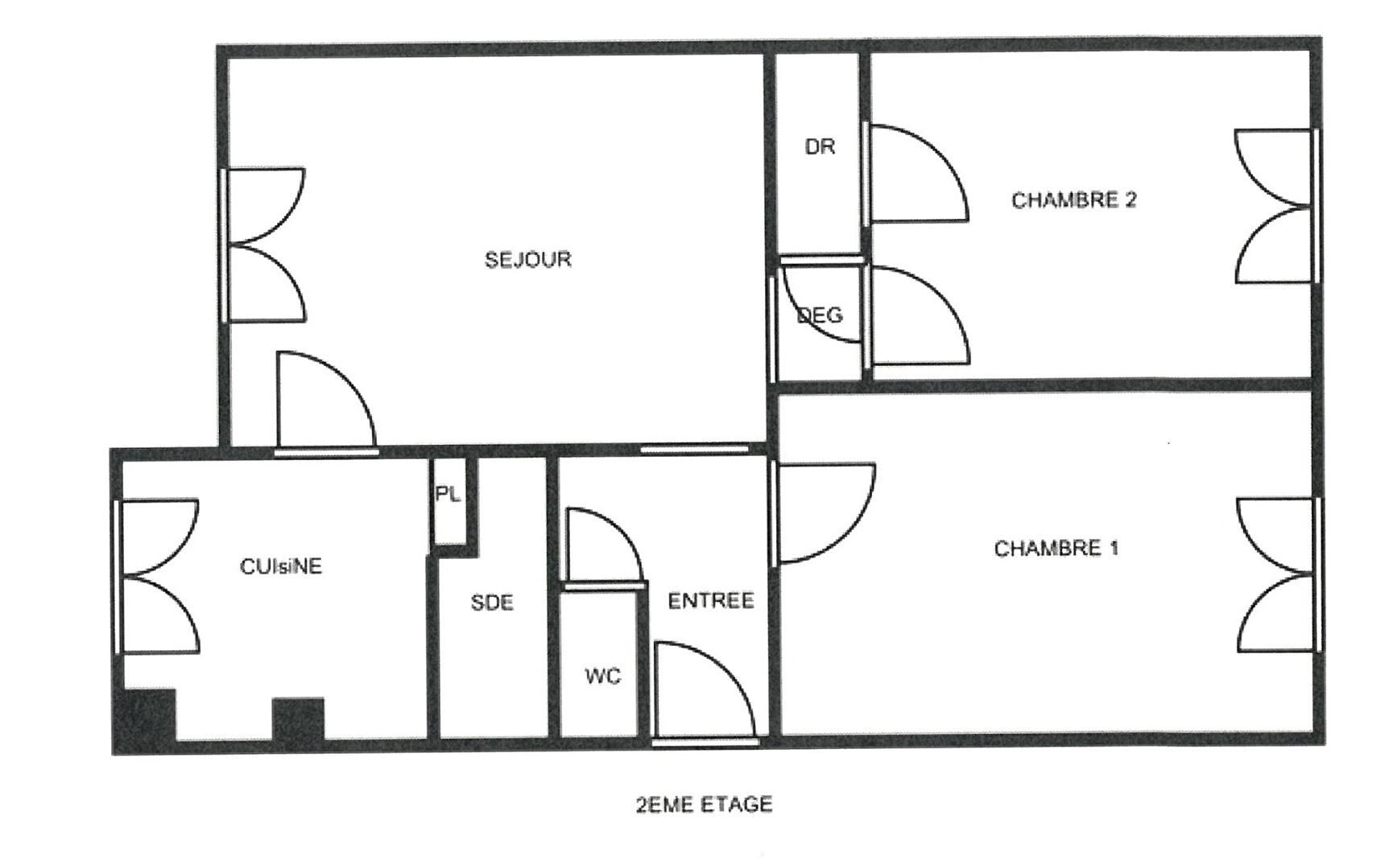 Il comprend : Entrée avec placards, GRANDE pièce de vie avec l'accès à 2 balcons, cuisine indépendante, une salle d'eau, wc séparé. Possibilité de créer 2P. Cave. Travaux...