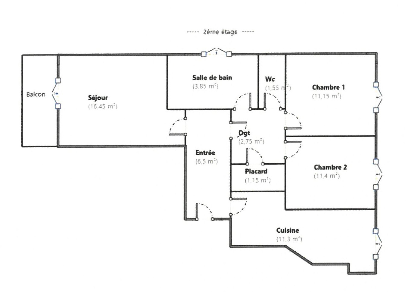 Entrée avec placard, séjour de 19m², cuisine, salle de bains avec wc, balcon. exposé OUEST, CALME ET CLAIR, A 3MN DE LA GARE ET DES COMMERCES.