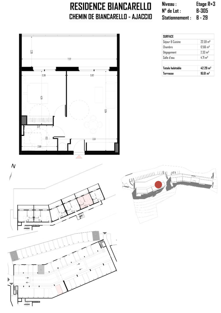 L'agence C, P Associées a le plaisir de vous présenter cet appartement T2 d'une superficie de 42.29m2 avec sa terrasse de 16.61m2 dans la "RESIDENCE BIANCARELLO".
