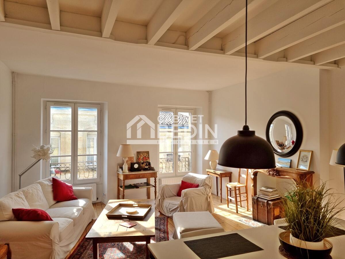 Exclusivité CABINET BEDIN - Triplex d?Exception 3 chambres . Bordeaux centre, au dernier étage d?un immeuble du XVIIe siècle, découvrez ce triplex lumineux d?environ 130 m² offrant une vue dégagée sur l?église Sainte-Croix. Il se compose d?un vaste séjour avec...