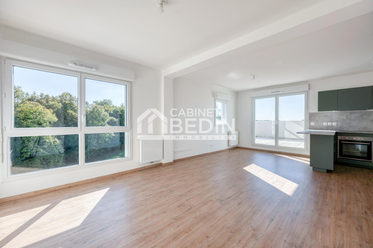 Exclusivité CABINET BEDIN - VILLENAVE D'ORNON. Appartement en duplex au dernier étage d'une résidence très récente composée d'un belle pièce de vie avec sa cuisine ouverte donnant sur une vaste terrasse ensoleillée, de 2 chambres, de 2 salles d&...