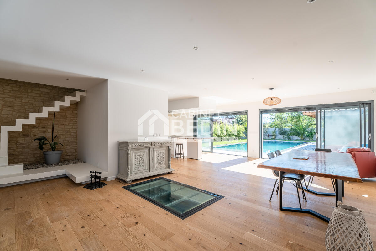Exclusivité CABINET BEDIN - CESTAS QUARTIER RESIDENTIEL. EXCLUSIVITÉ CABINET BEDIN ? Superbe maison d?architecte avec piscine et grand terrain arboré<BR>Nichée dans un environnement calme et verdoyant, cette maison d?architecte de 2000 vous séduira par s...